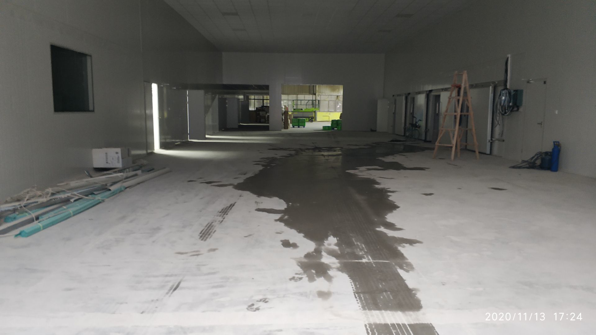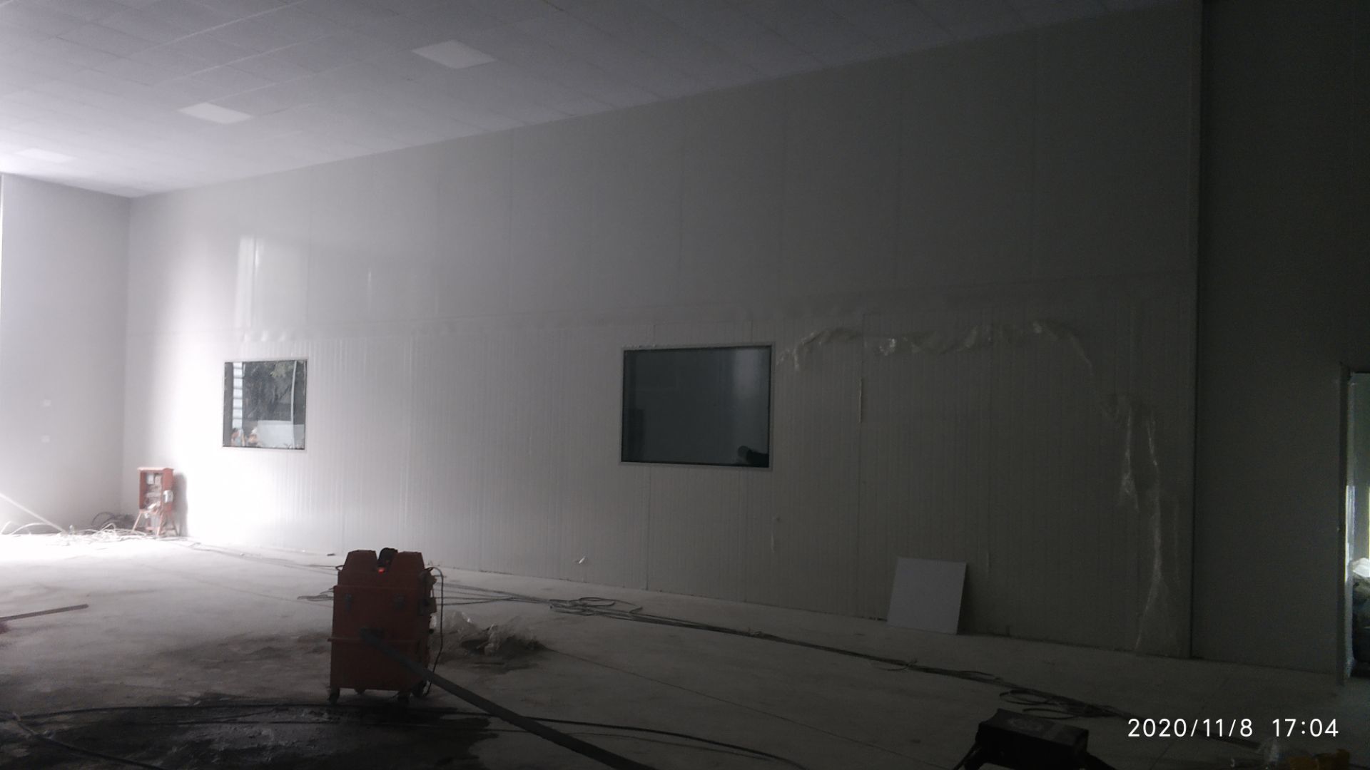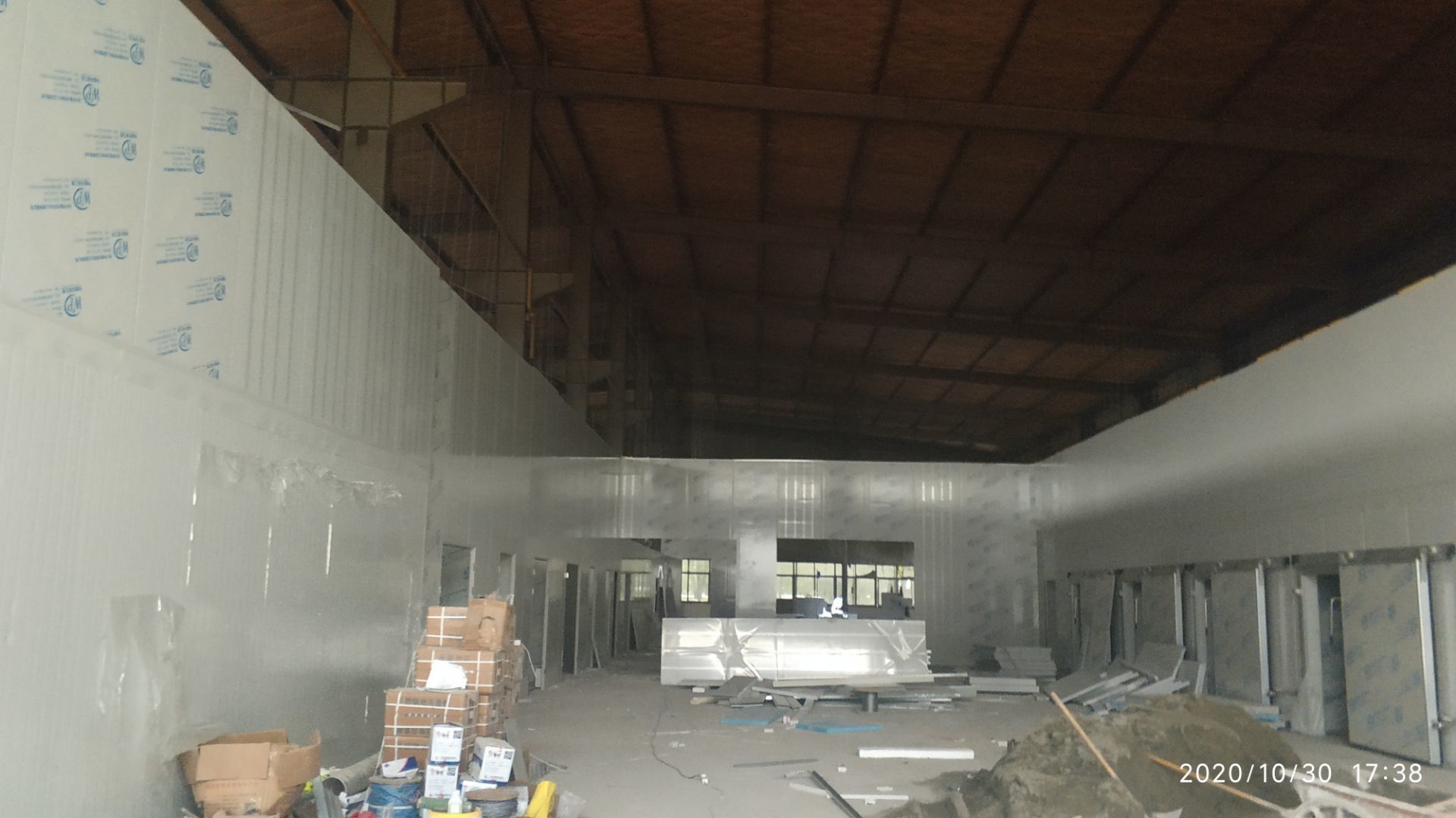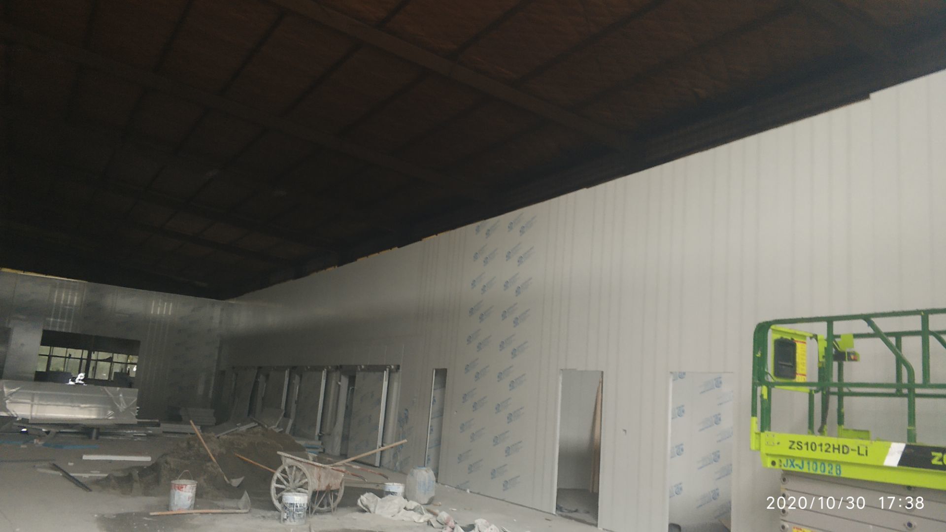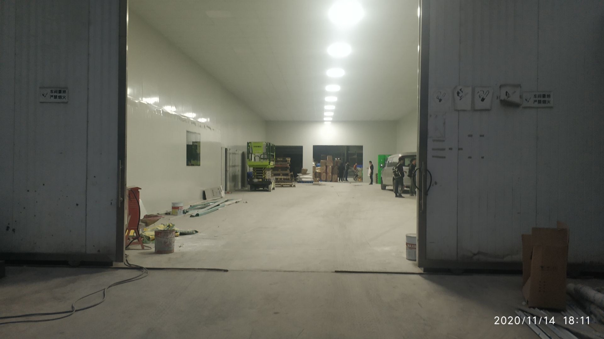 1.地面打磨完成分揀區(qū)域和后勤庫房。2.彩鋼組收邊收口,安裝門完成百分之八十。3.照明插座布線安裝完成百分之八十五。 4.凍庫內(nèi)機組安裝完成。 5.卷簾門安裝完成。