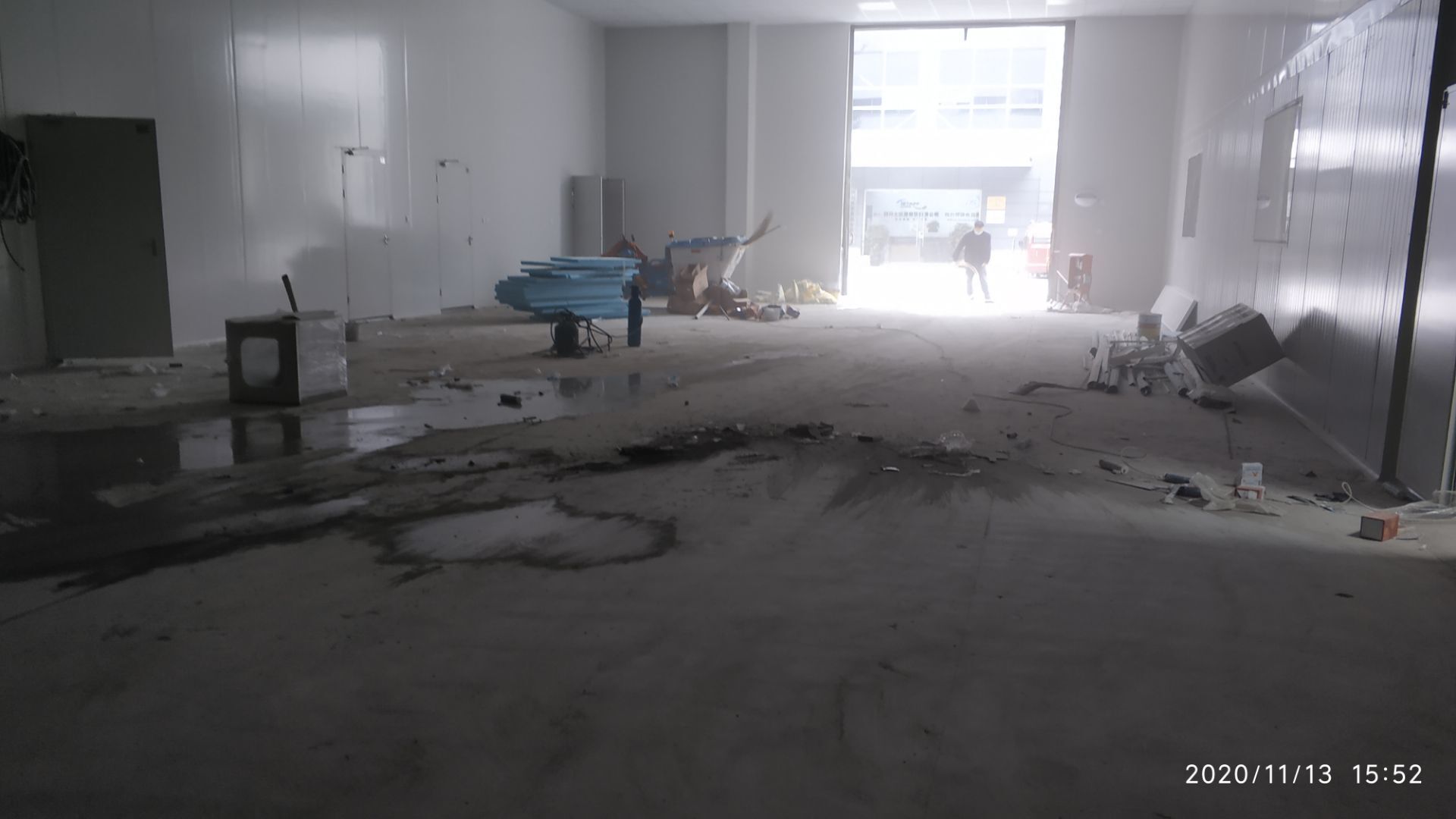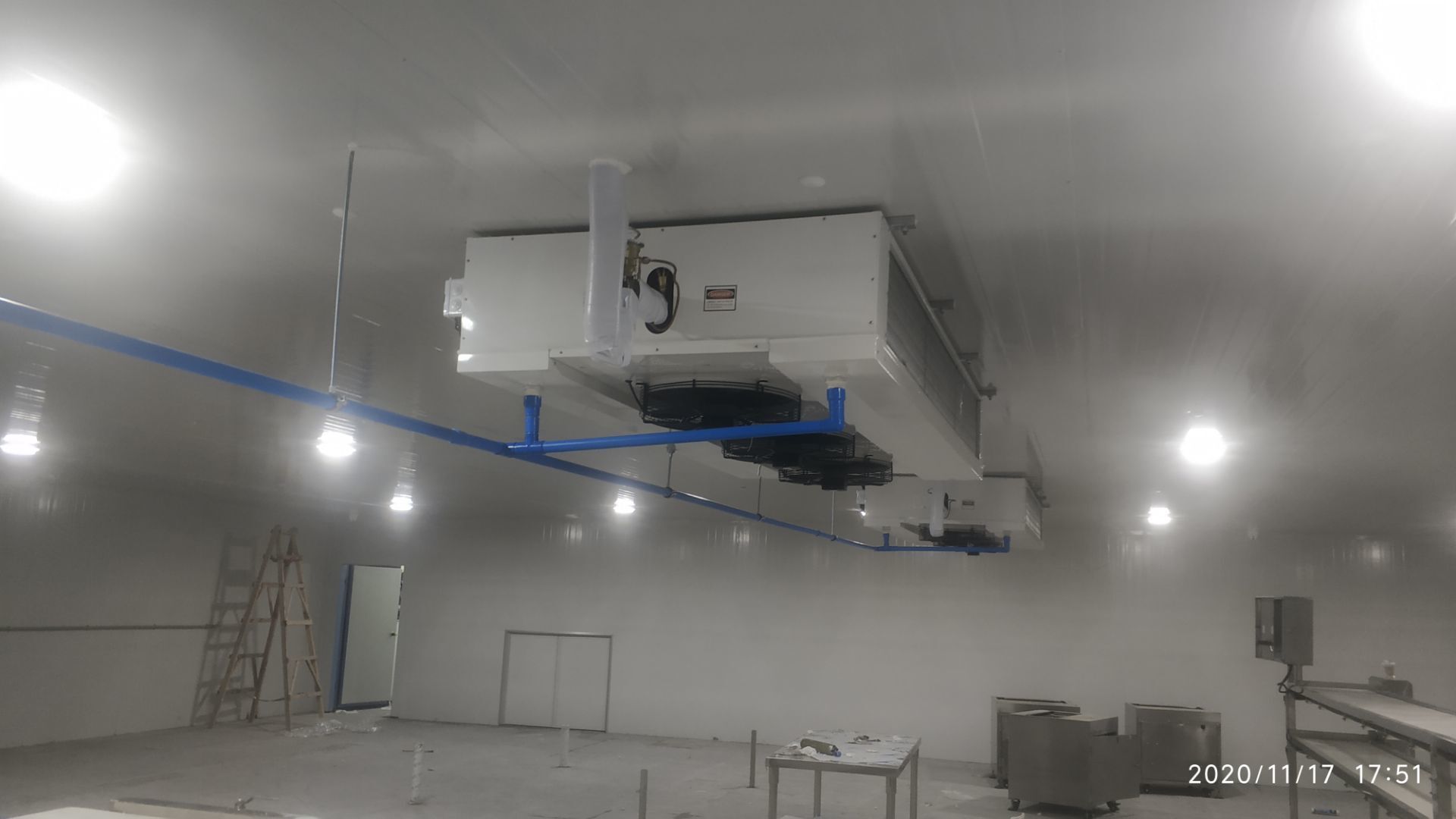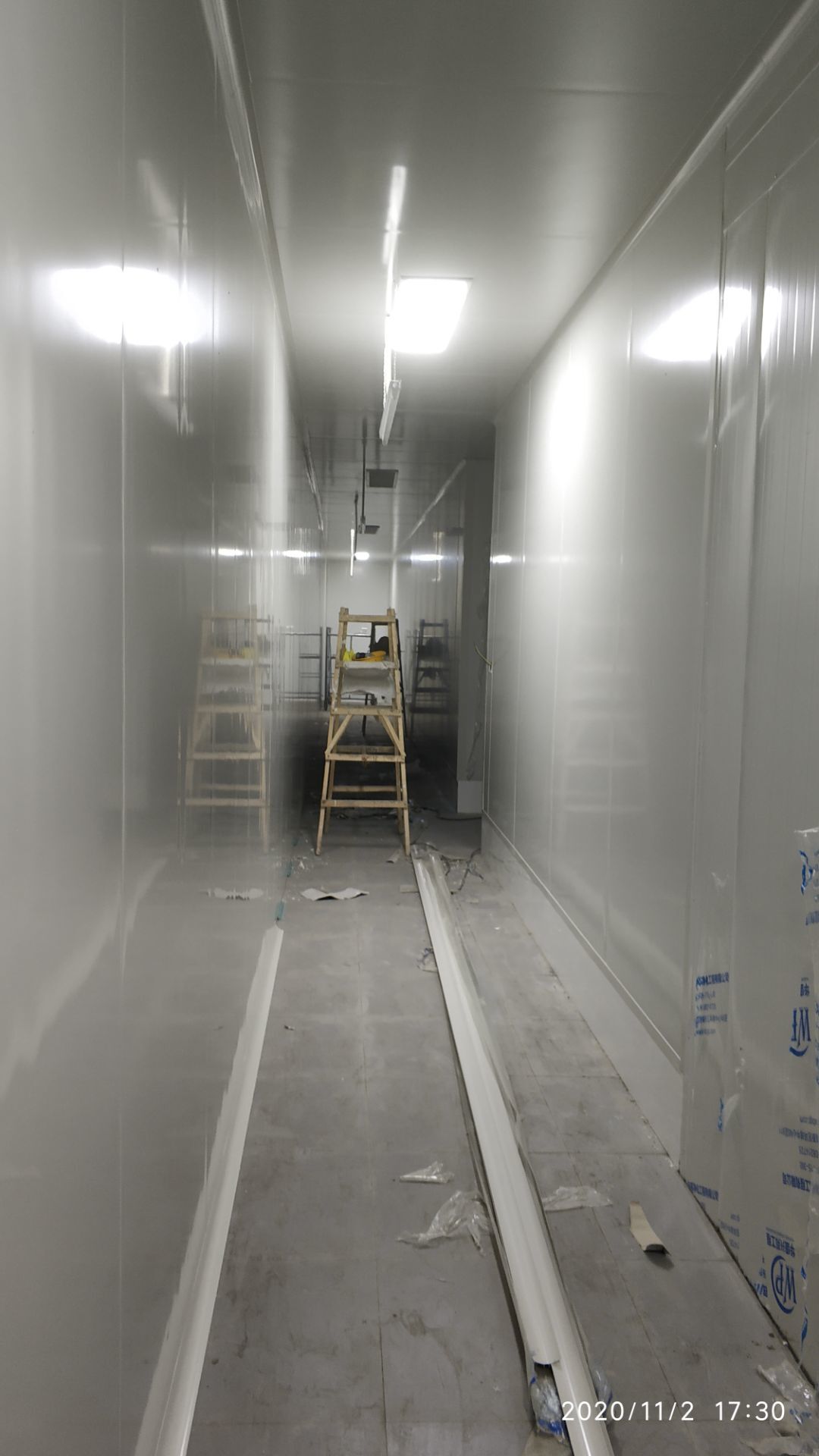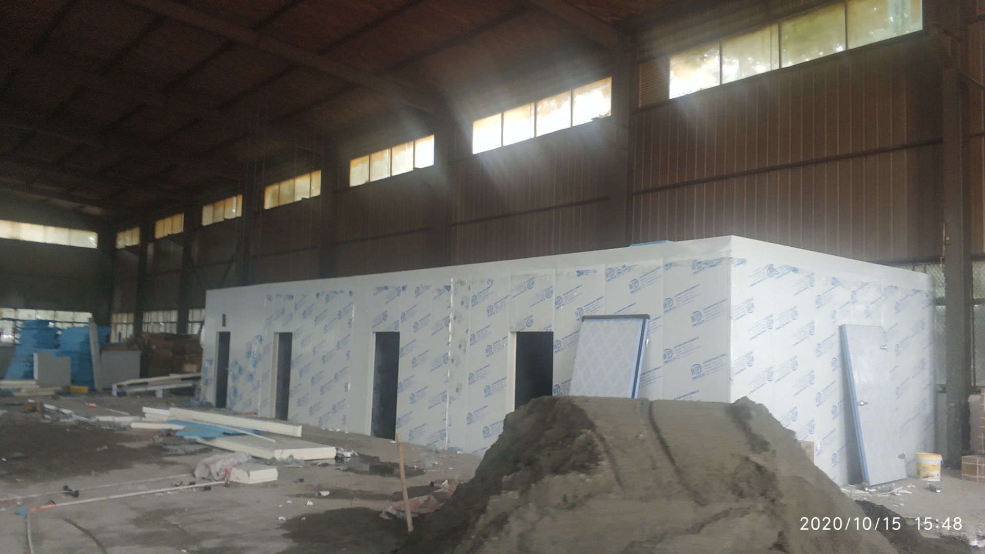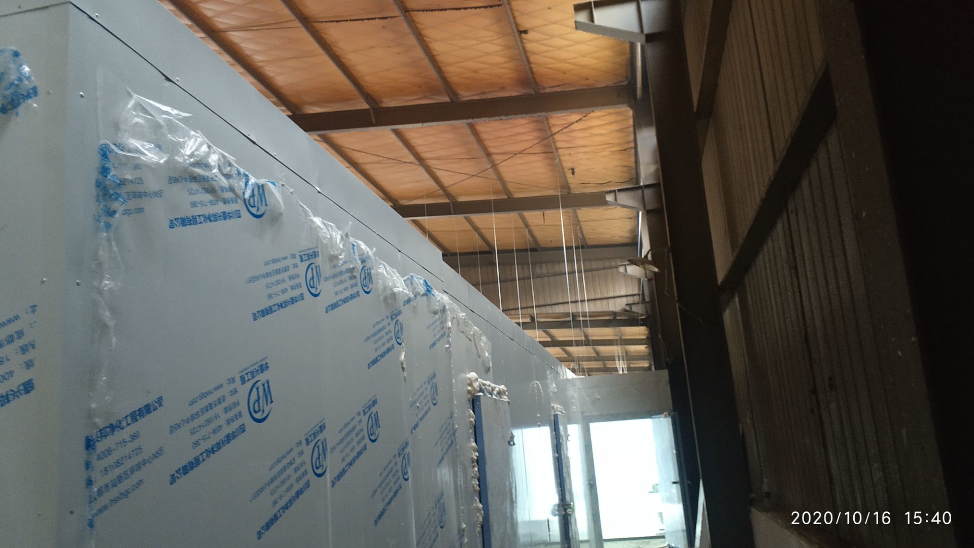 1.地面打磨完成分揀區(qū)域和后勤庫房。2.彩鋼組收邊收口,安裝門完成百分之八十。3.照明插座布線安裝完成百分之八十五。 4.凍庫內(nèi)機組安裝完成。 5.卷簾門安裝完成。