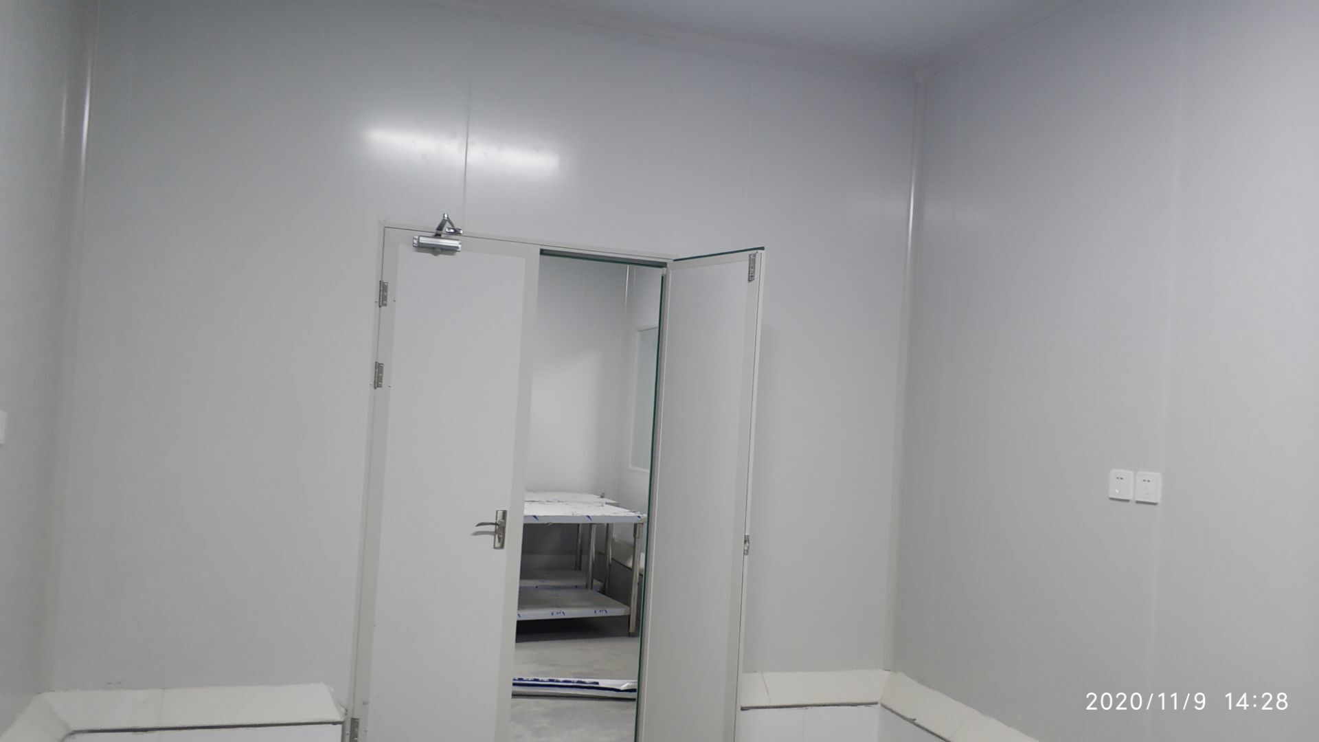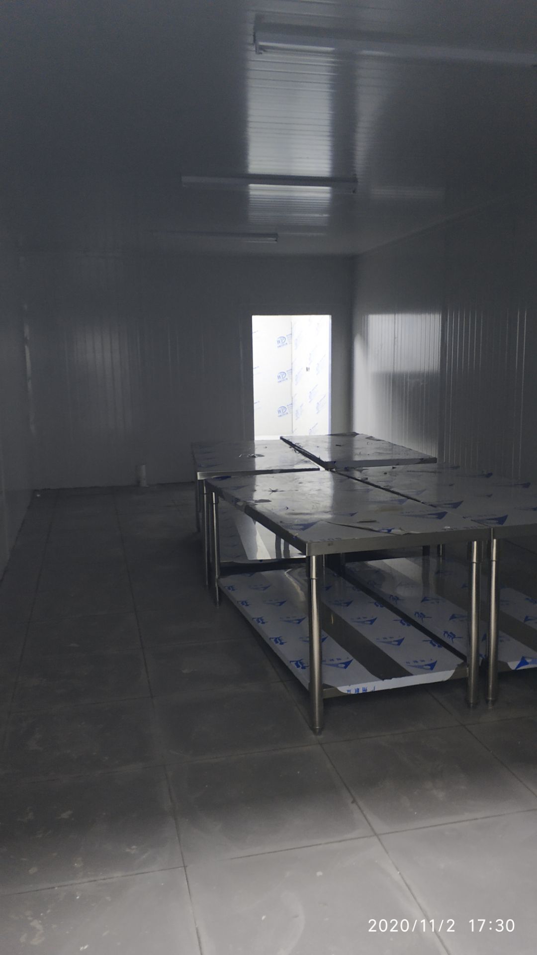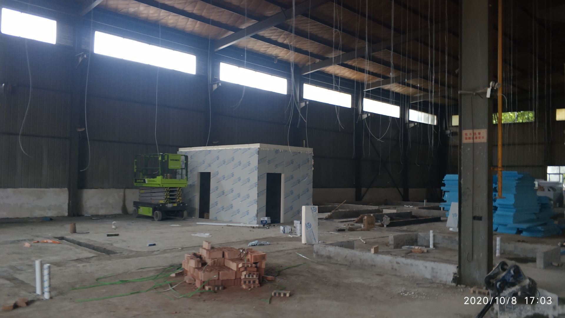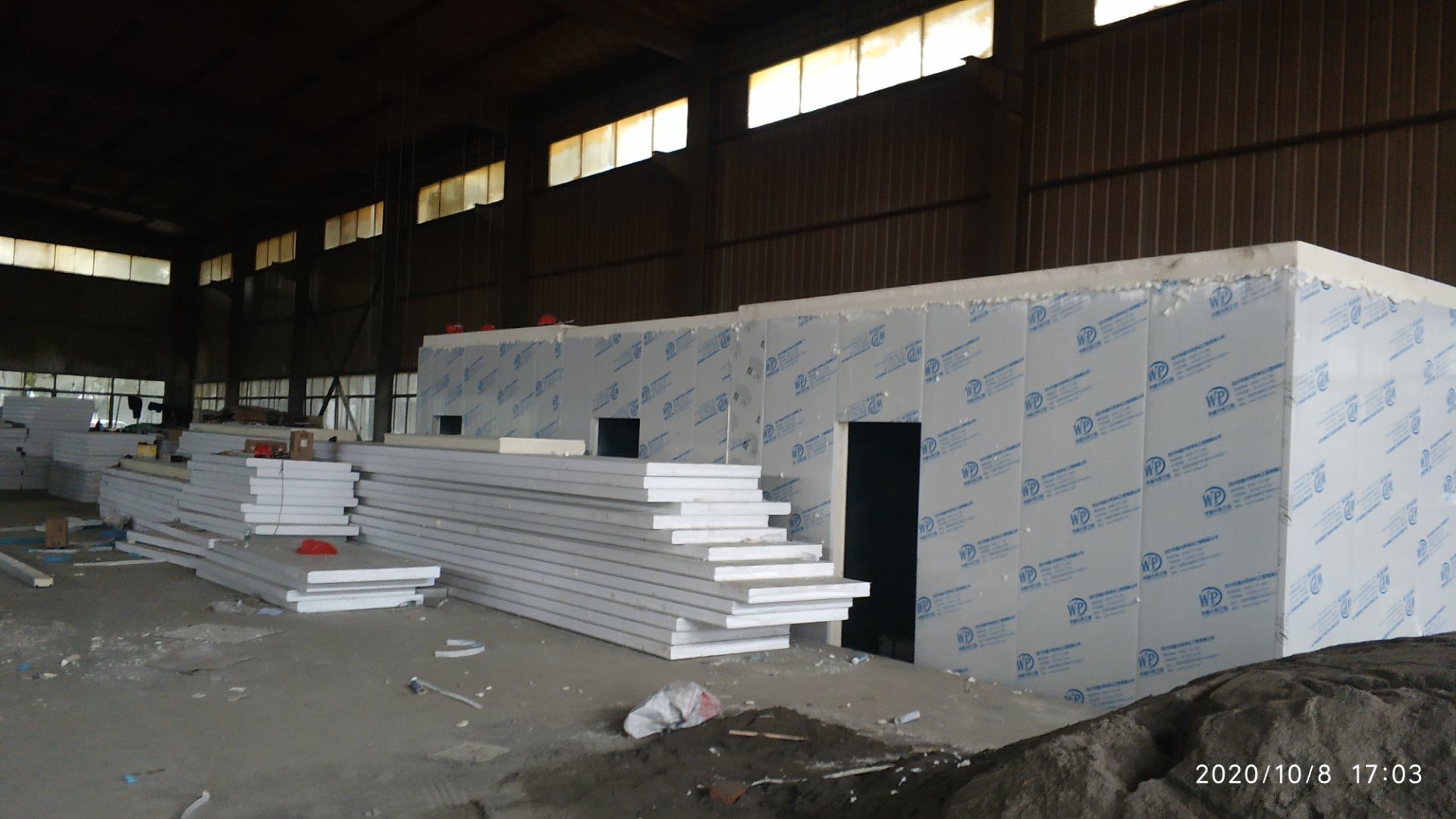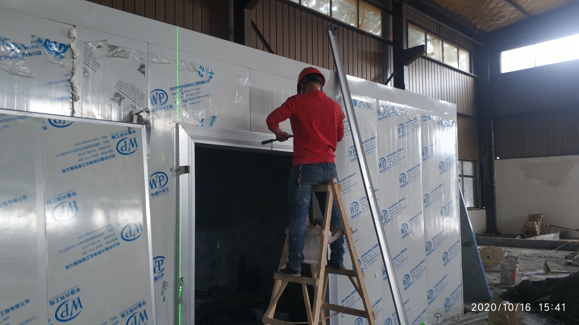 1.地面打磨完成分揀區(qū)域和后勤庫房。2.彩鋼組收邊收口,安裝門完成百分之八十。3.照明插座布線安裝完成百分之八十五。 4.凍庫內(nèi)機組安裝完成。 5.卷簾門安裝完成。