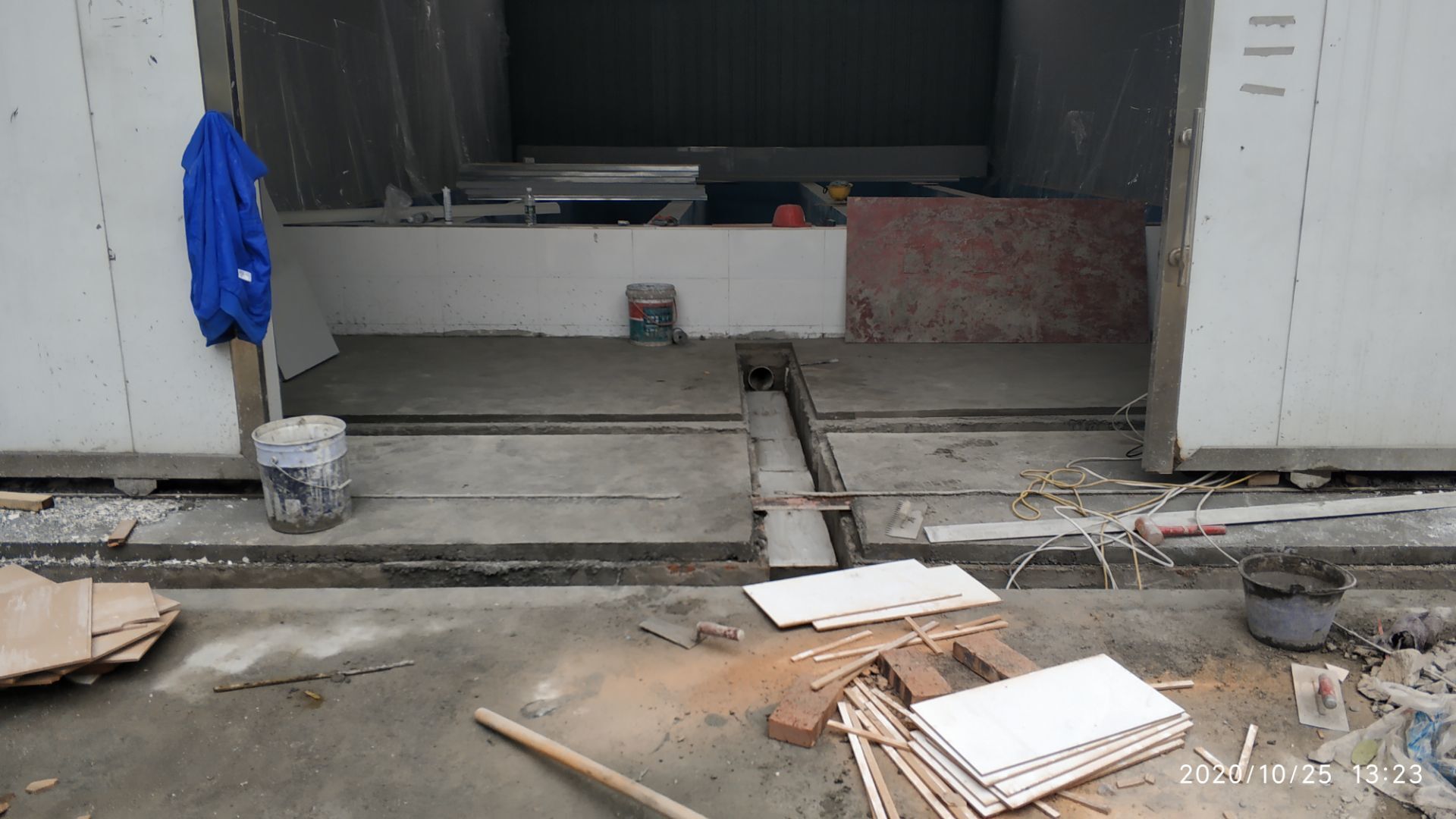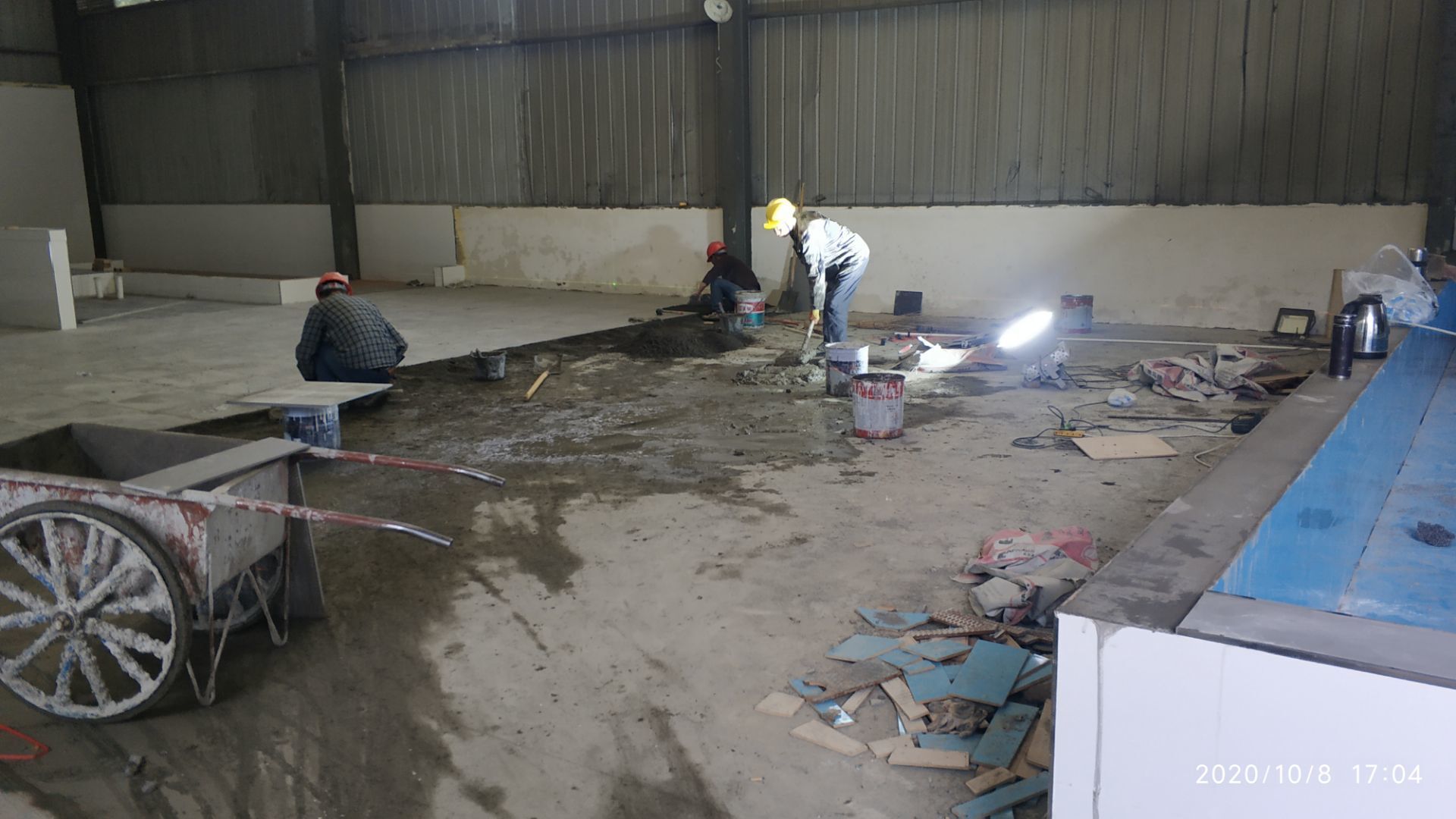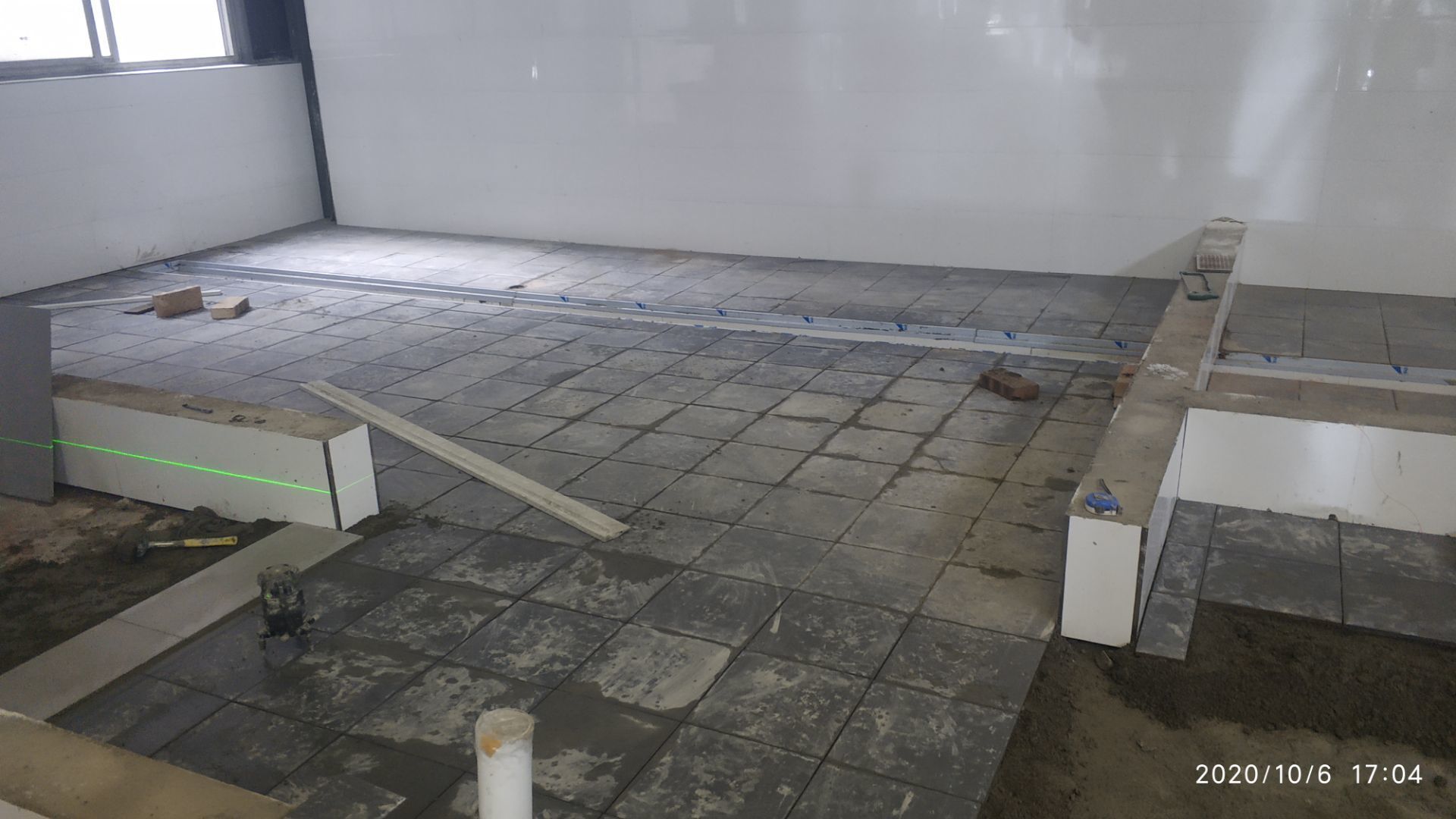 1.凍庫收邊收口完成百分之七十;2、凍庫門安裝完成百分之六十五; 3、生產(chǎn)車間地面鋪裝完成百分之七十; 4、生產(chǎn)車間排水溝貼磚完成。