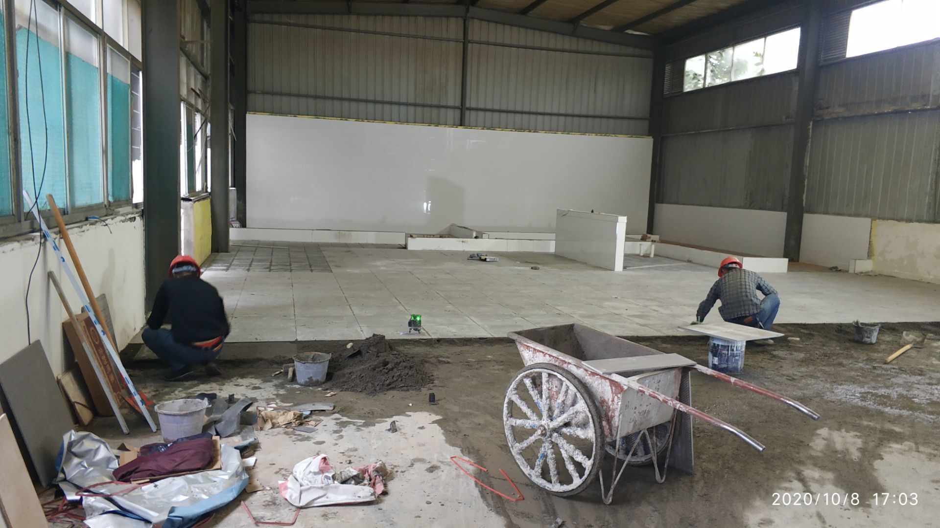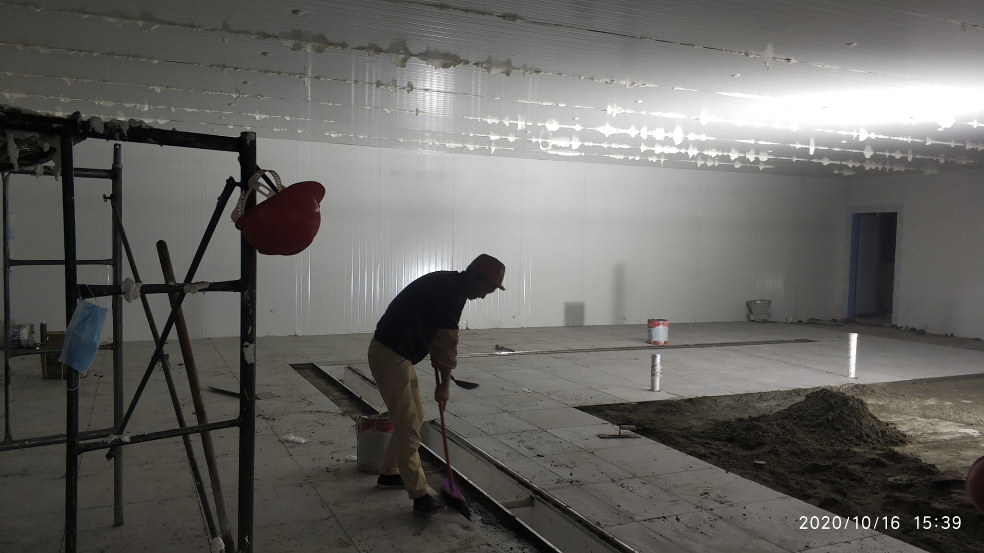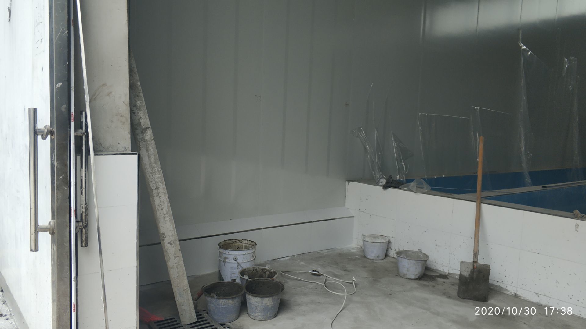 1.地面瓷磚鋪貼完成百分之八十。 2.凍庫墻板安裝施工完成百分之五。