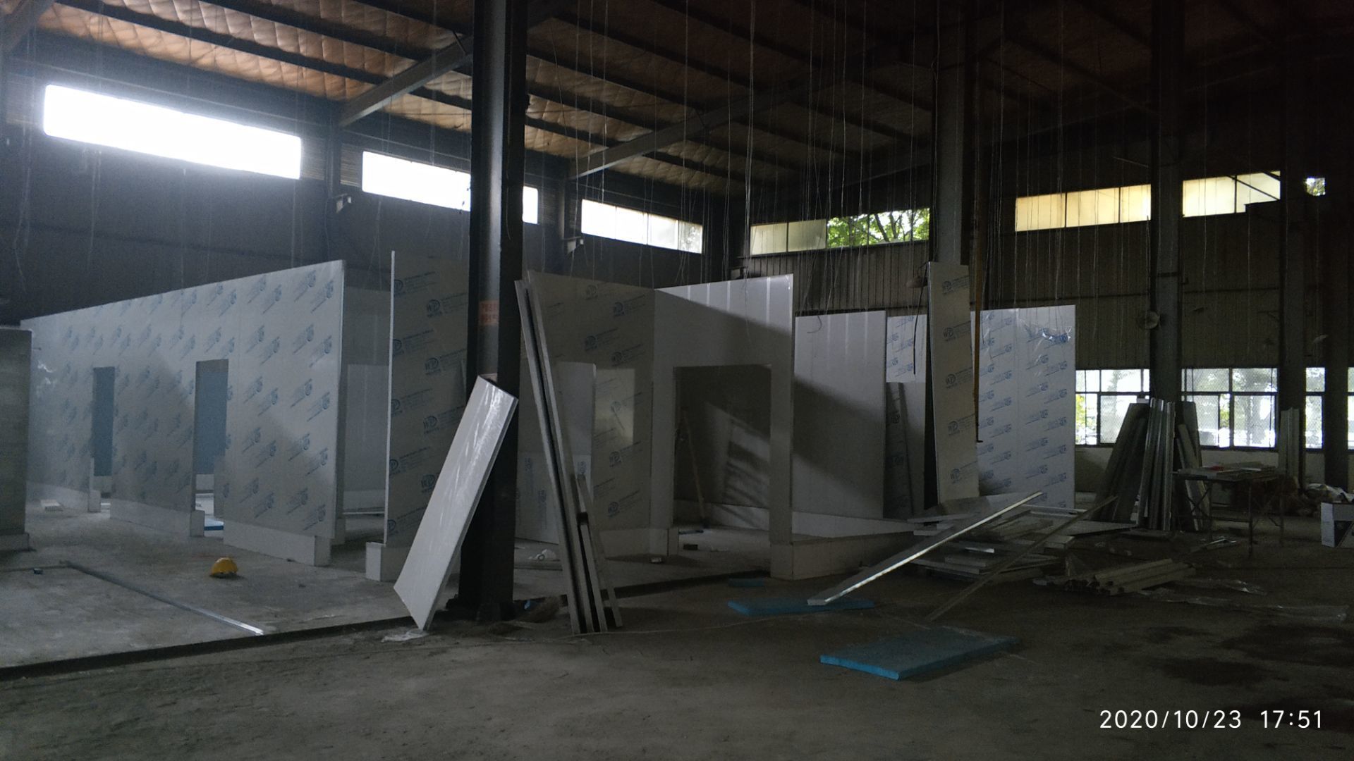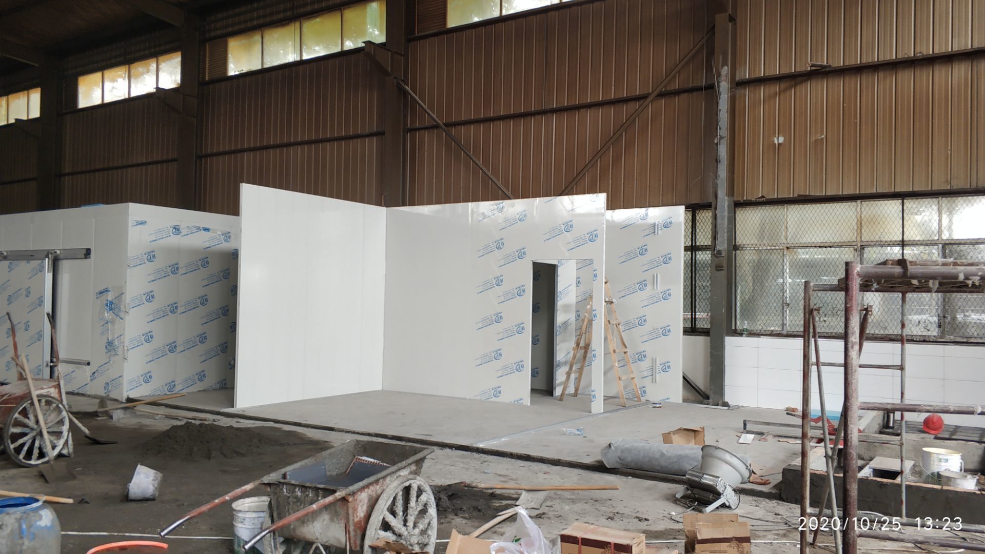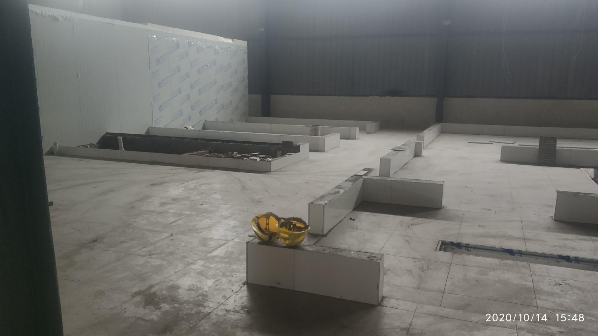 1.多功能區(qū)域地面鋪裝施工完成百分之五十五。 2.所有凍庫墻板安裝完成百分之五十。
