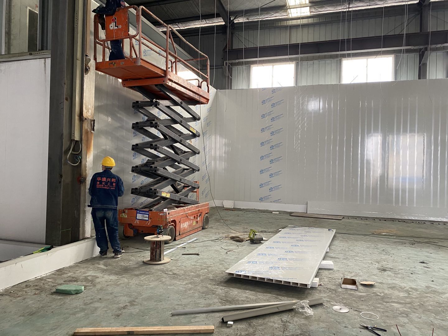 1,排水溝貼磚完成60米。 2,擋水墻砌筑完成80米。抹灰完成40米。 3,鋼平臺隊伍完成柱子材料下料,預埋件安裝澆筑混凝土。 4,凍庫防水完成百分之九十。