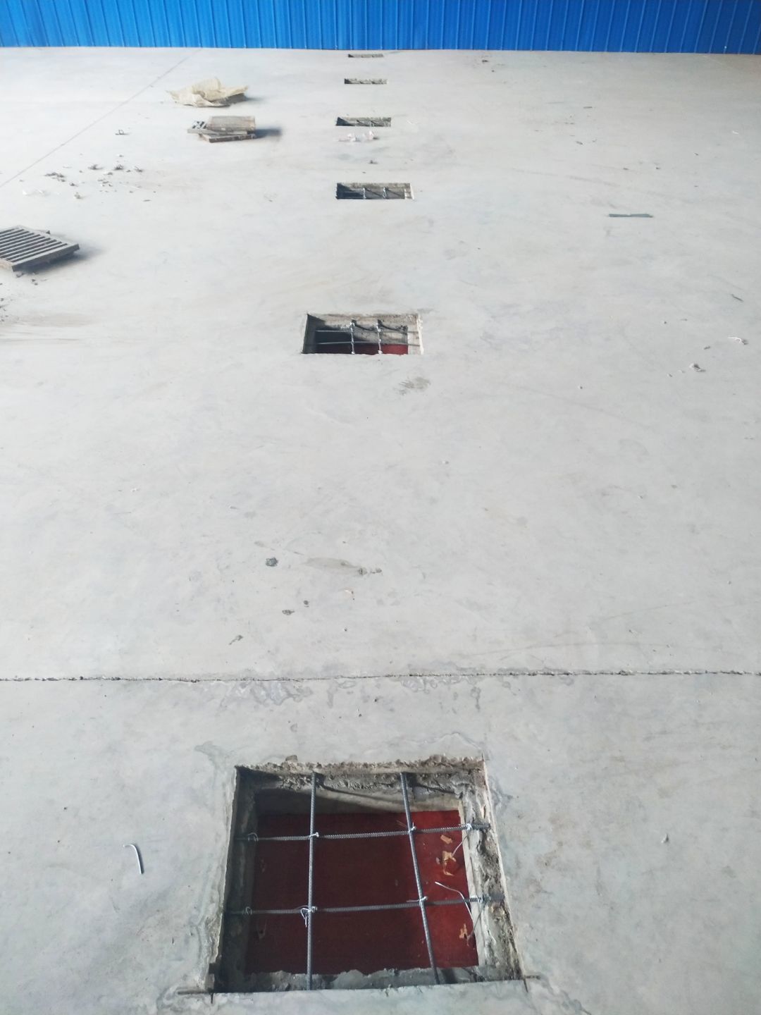 庫房固化地坪施工完成,周轉框清洗新打地坪伸縮縫切割完成。