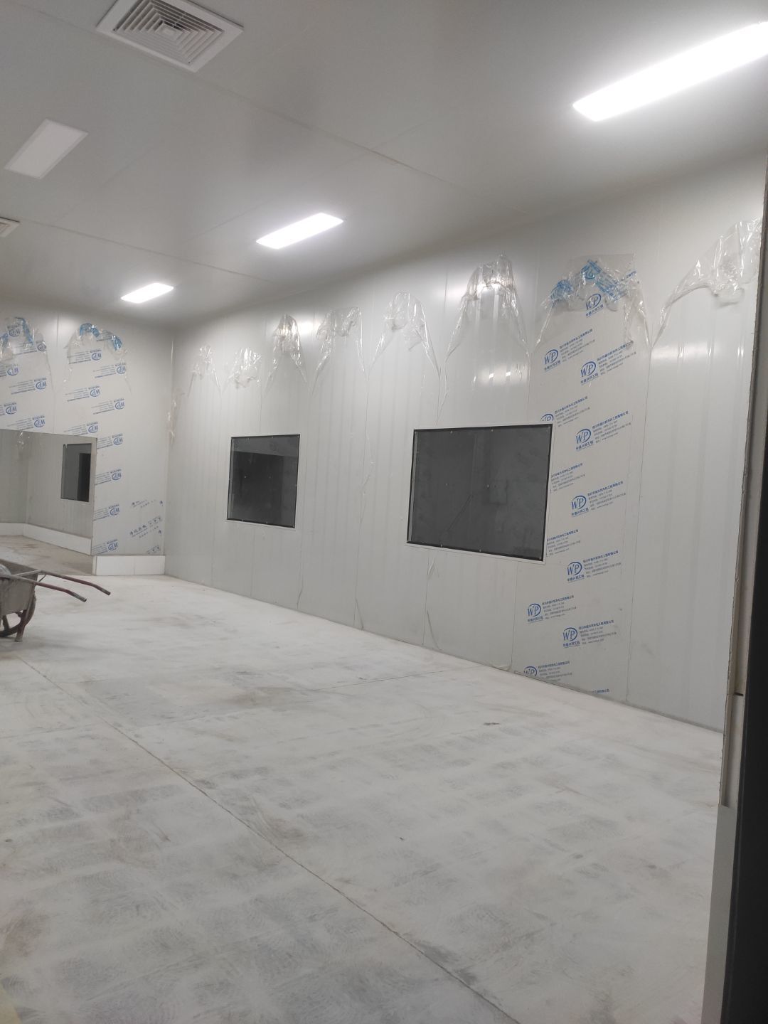 機器設備就位 圓弧膠水完成百分之八十 傳遞窗安裝完成