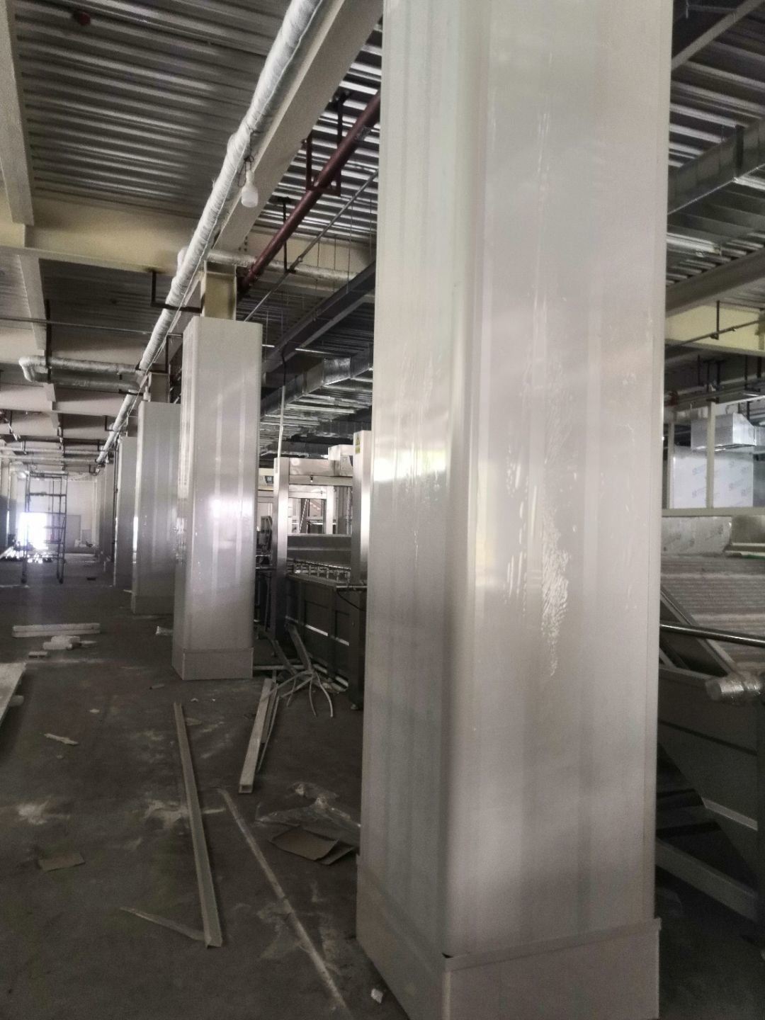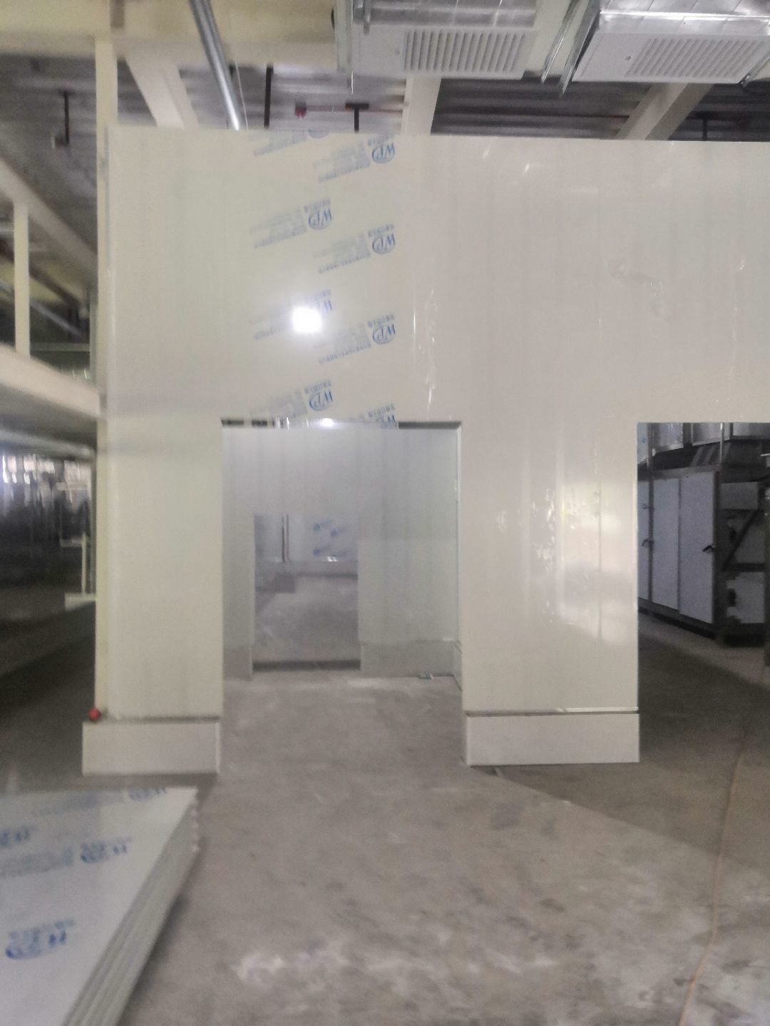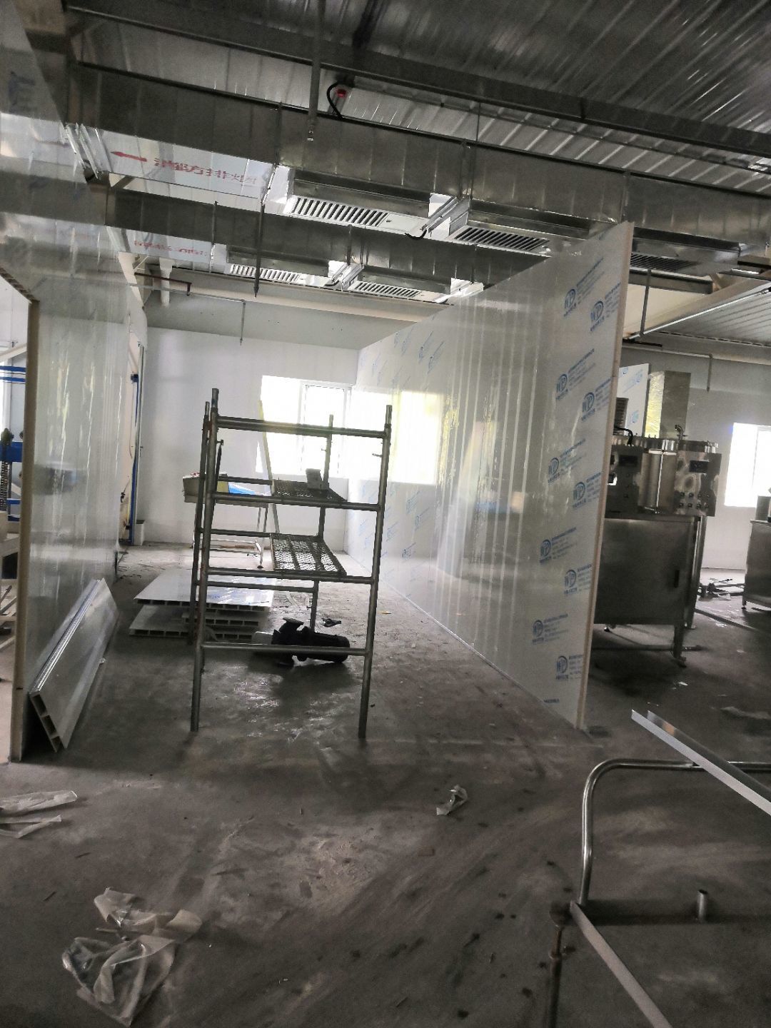 1、內包間,殺菌間,更衣間,煉油間打膠條,(完成二樓打膠條20%); 2、內包間拍圓弧(完成二樓圓弧5%) ;3、殺菌間包氣管子。