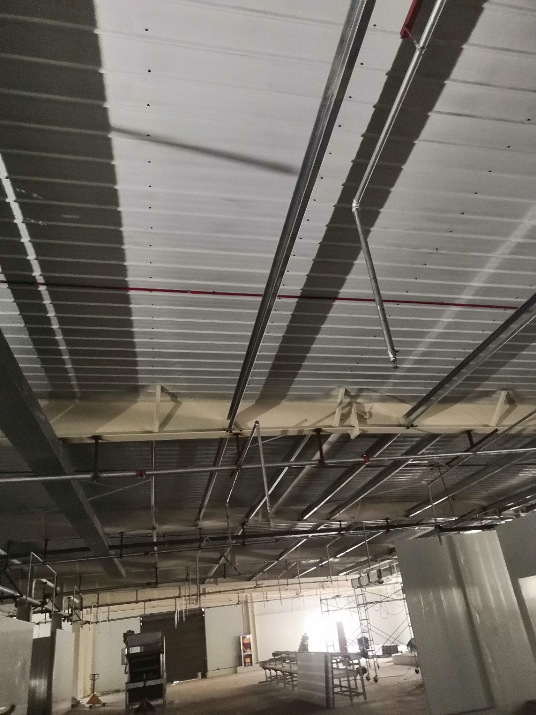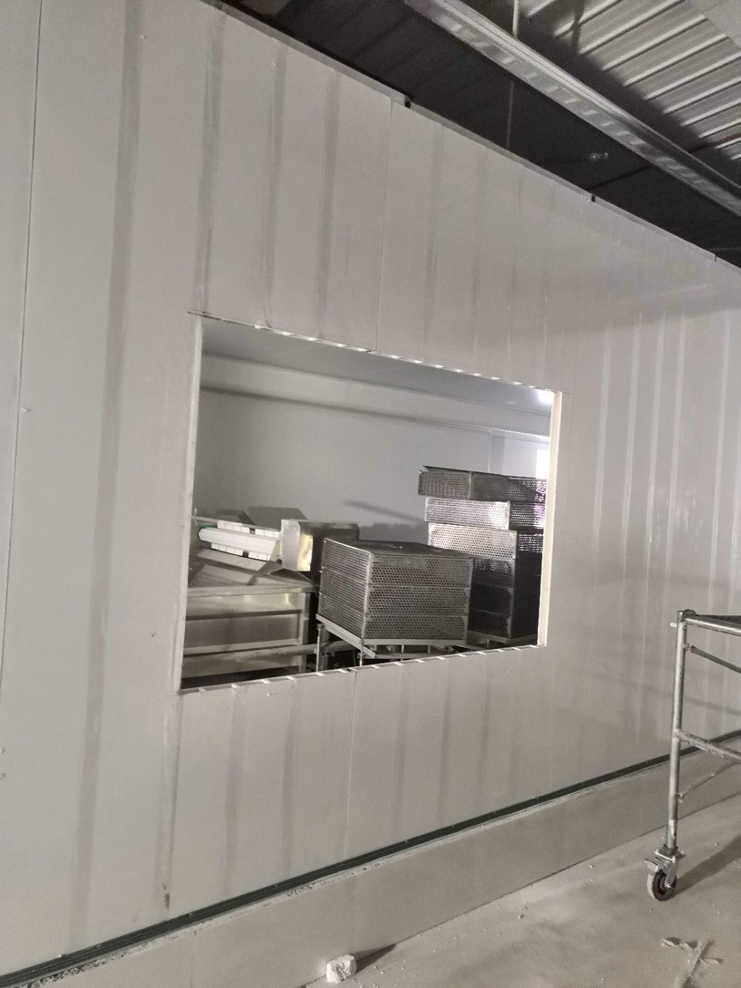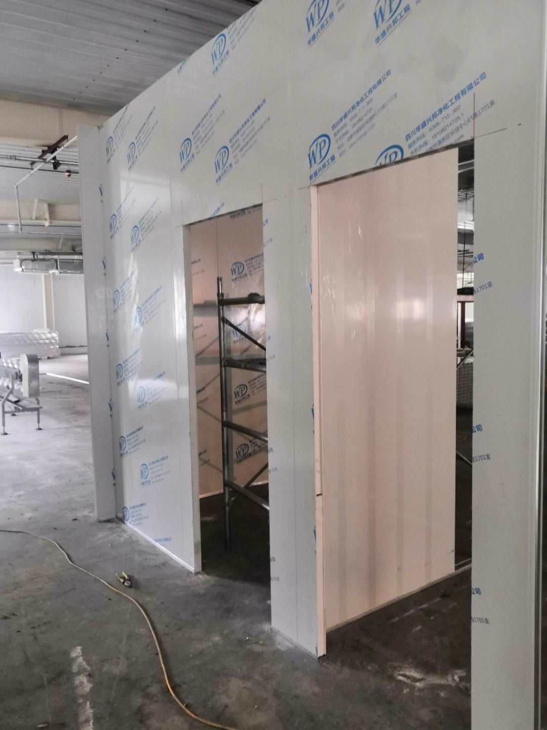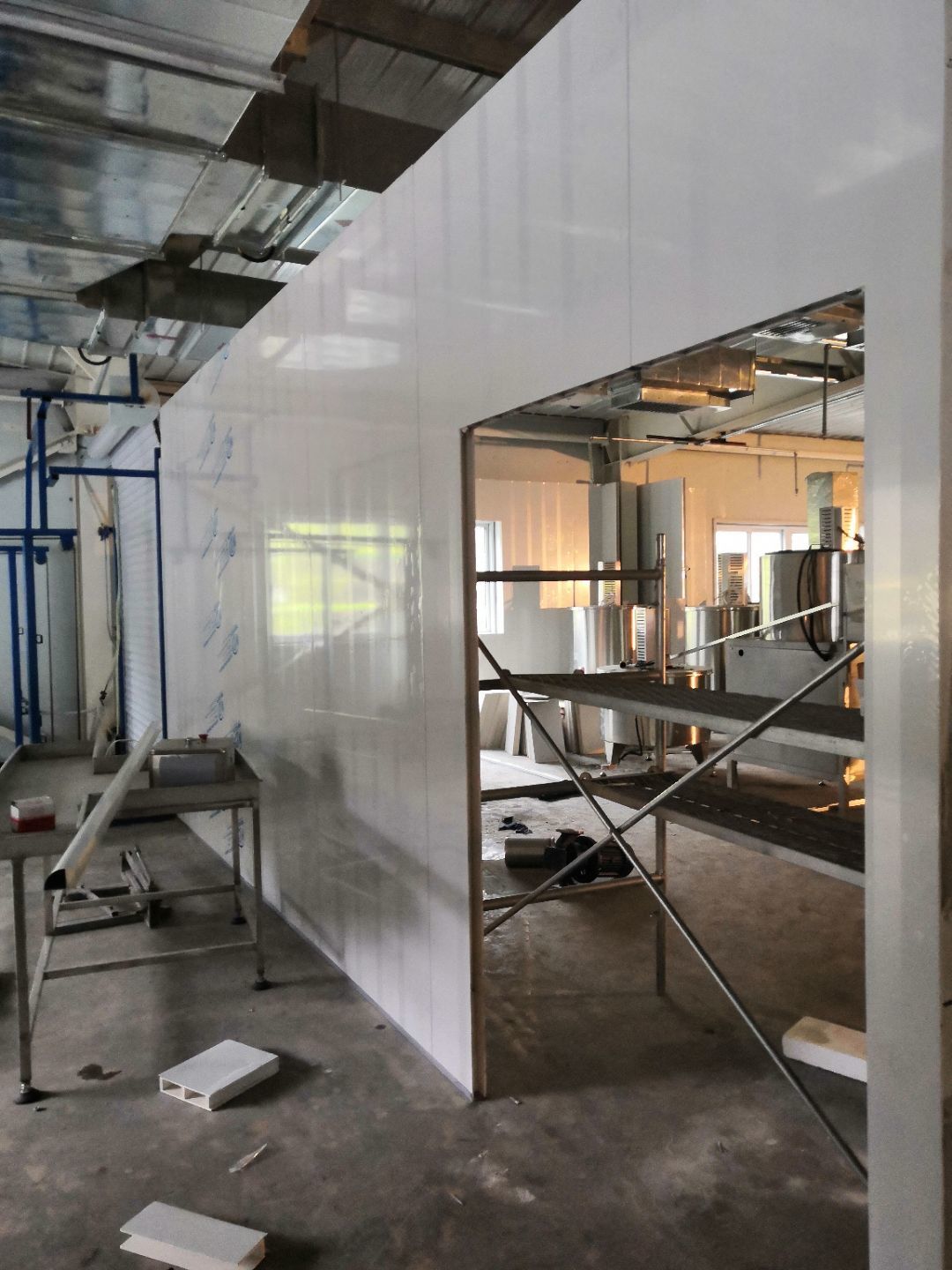 1、內包間,殺菌間,更衣間,煉油間打膠條,(完成二樓打膠條20%); 2、內包間拍圓弧(完成二樓圓弧5%) ;3、殺菌間包氣管子。