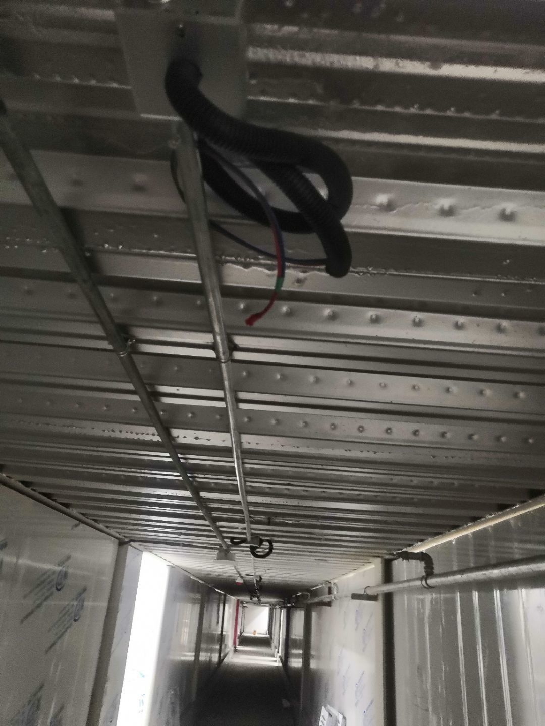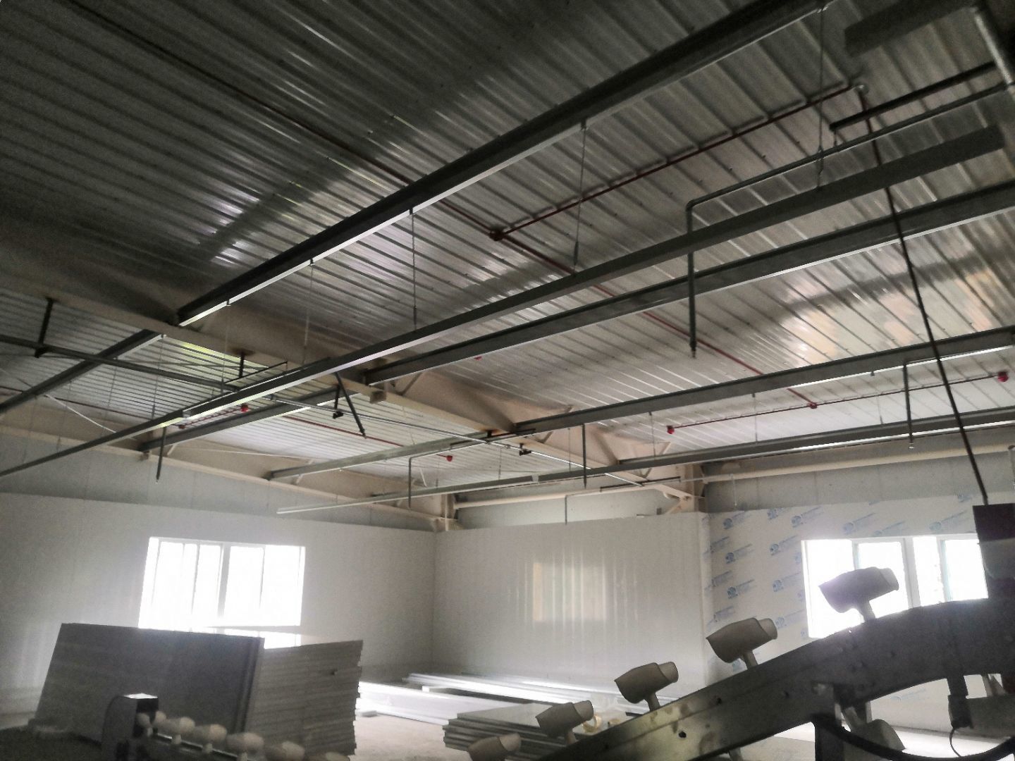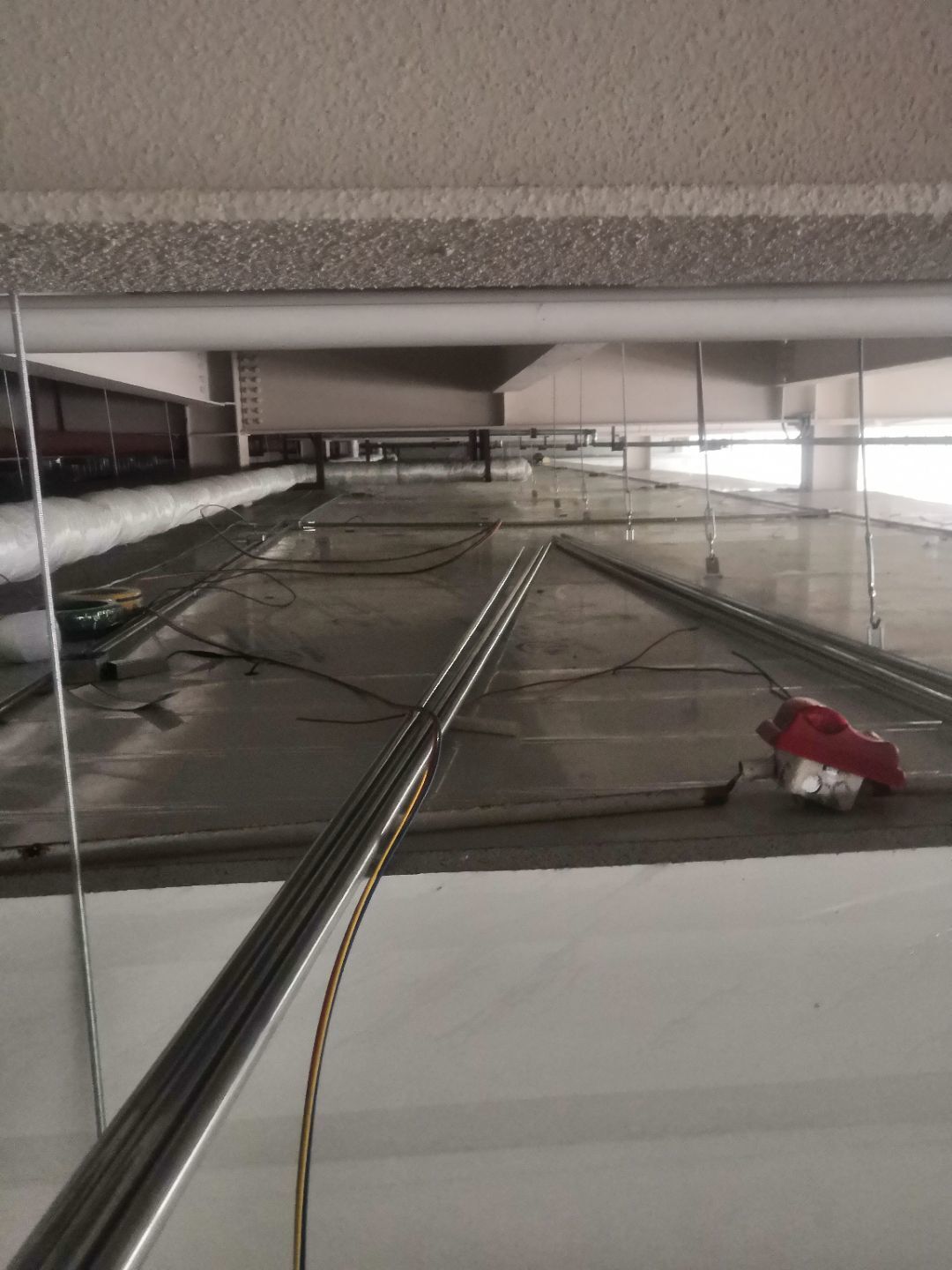 1.一樓樓梯間立墻板完成100%; 2一樓通道排燈線,二樓參觀通到排線;3. 電梯立墻板,一樓接臭氧管子90%。