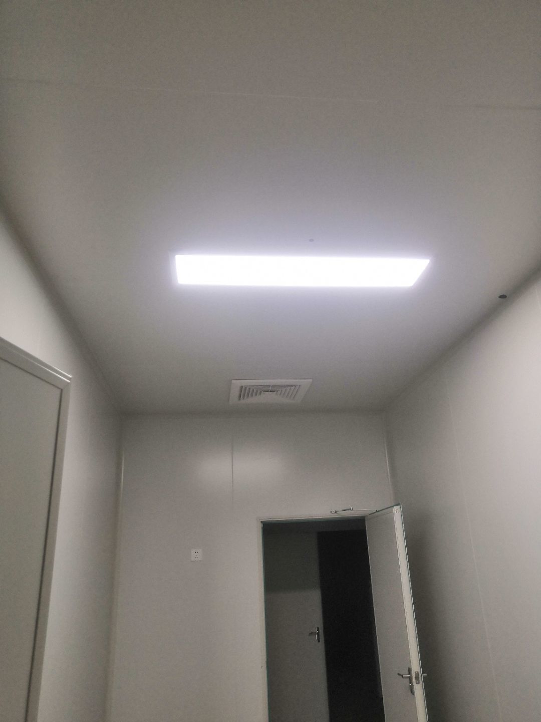 1:一樓裝平板燈完成50%、安裝門完成40%、一樓吊頂完成70%;2:二樓平板燈排管,穿線完成95%;3:打膠條完成35%。