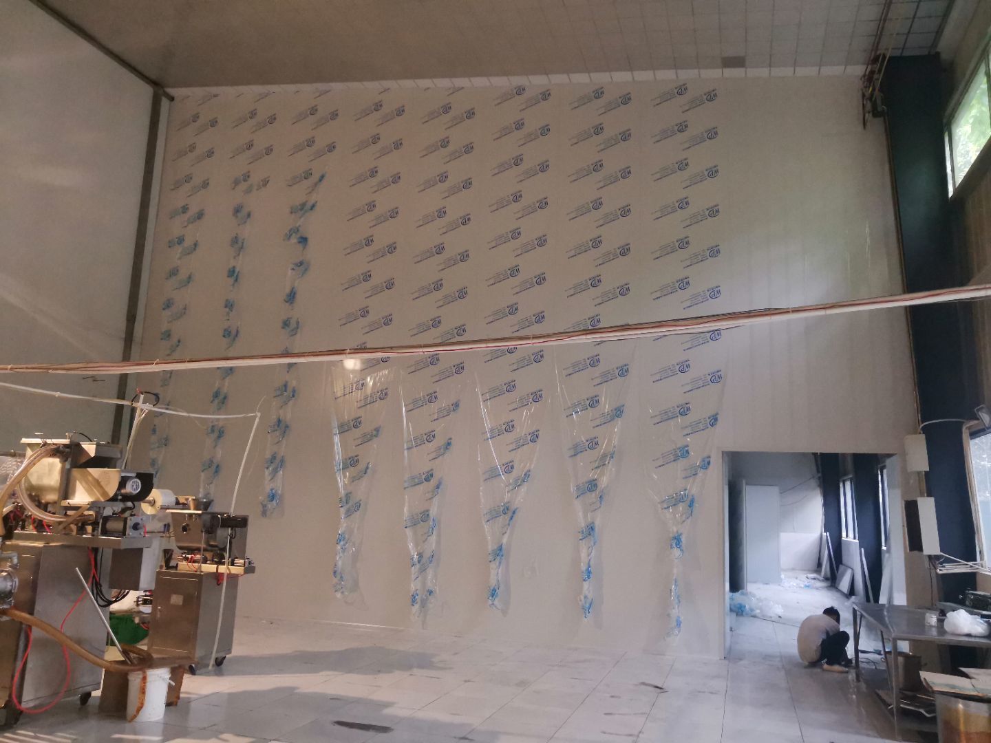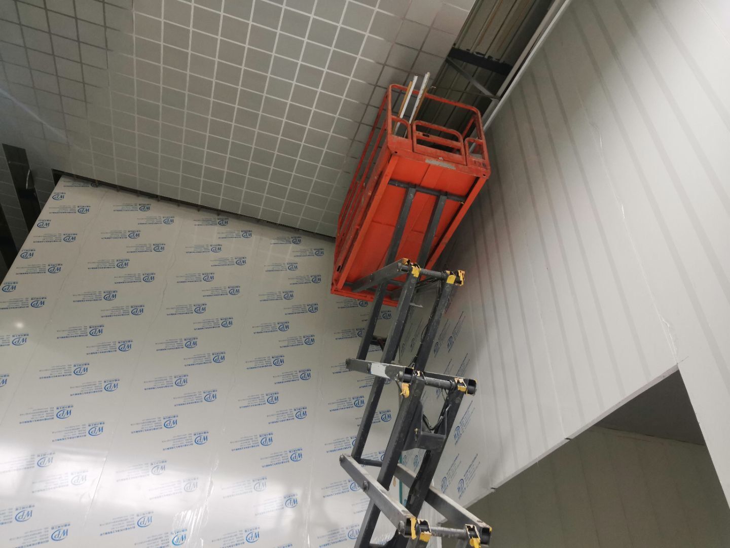 1:墻板完成; 2:三防板頂板完成,鋁扣板恢復完成; 3:門窗完成70%; 4,水電班組進場。