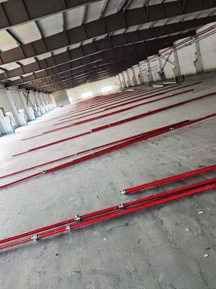 今日施工內(nèi)容 1,排水管安裝 2,消防材料吊裝 3,凍庫板材 安裝 4,廁所墻體砌筑 5,混凝土施工 今日材料進(jìn)場 消防管 商混