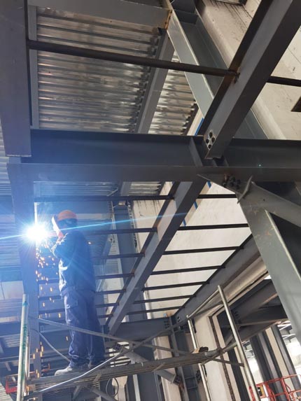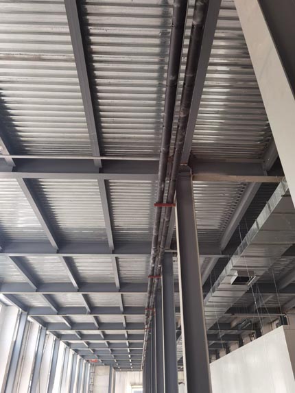 1,一樓地槽 彩板安裝 2,一樓消防立管安裝 3,一層鋼構(gòu)平臺施工 4,一層擋水墻抹灰 5,樓層鋼構(gòu)焊接 加固 6,一層空調(diào)水管保溫 7,一層防排煙施工 8,二樓地槽 彩板安裝