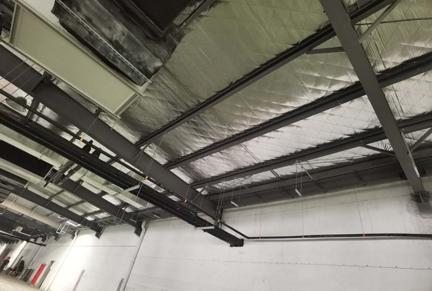 今日施工內(nèi)容 1,彩板墻頂板安裝 2,一層擋水墻抹灰 3,一層動力電橋架安裝 4,一層地坪施工 5,外墻真石漆施工 6,一層照明安裝 7,一層風(fēng)管保溫安裝