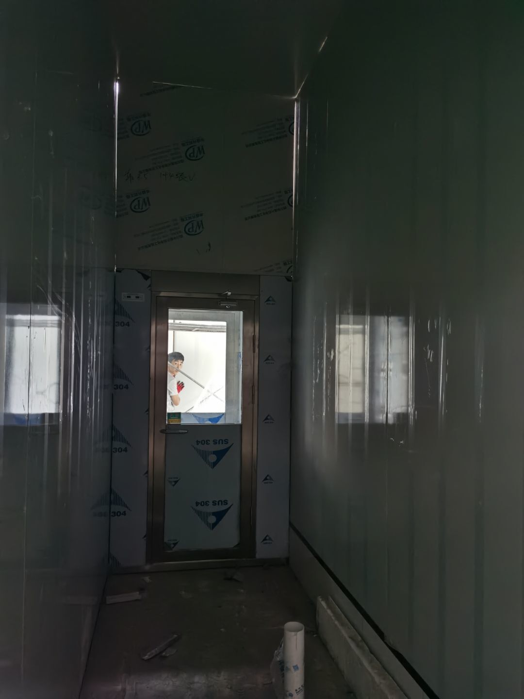 1,彩鋼墻板立板除預留設備外完成100% 2,彩鋼板吊頂除預留外,完成95% 3,三防板吊頂完成100% 4,水電安裝完成60% 5,彩鋼板收尾工作完成50%