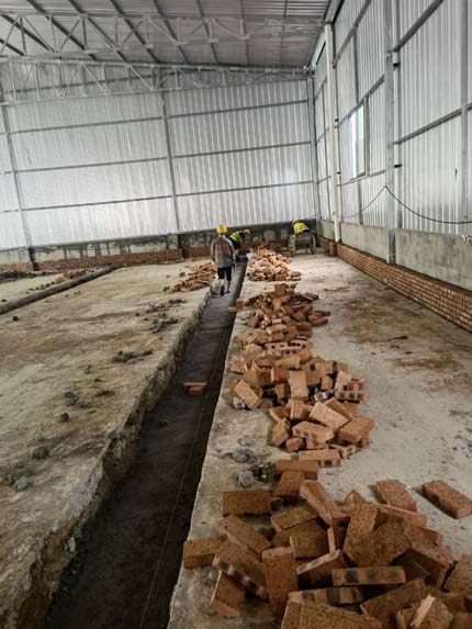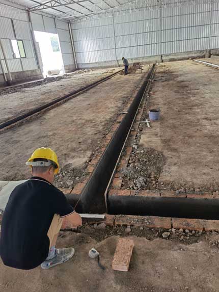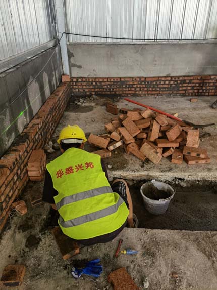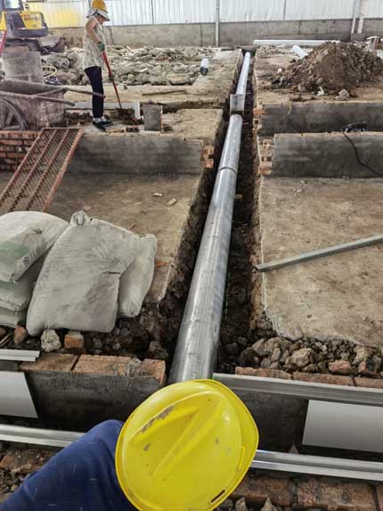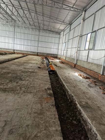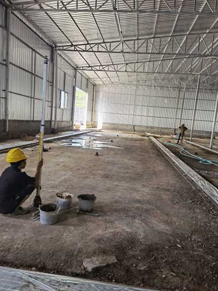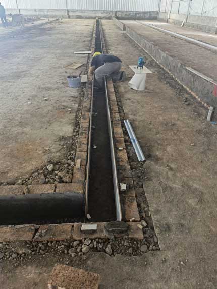 1.不銹鋼水溝折邊件焊接完成。 2.地坪澆筑準備工作完成。