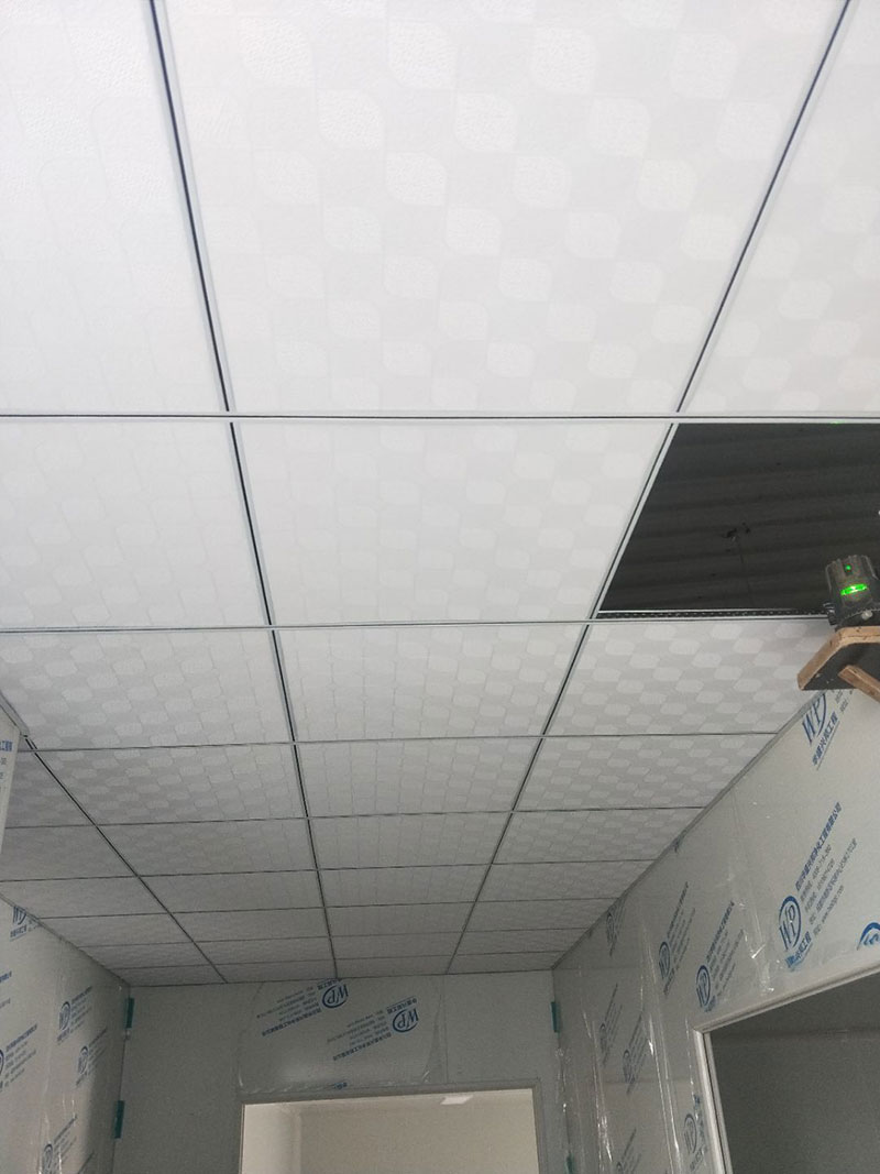 1:彩鋼墻板完成100% 2:彩鋼頂板完成100% 3:撕膜打膠完成98% 4:自制門窗完成95% 5:水電完成100% 6:圓弧完成97% 7:金剛砂完成100% 8:三防板吊頂完成100% 9:地面固化完成100% 10:動力電完成100% 11:空調安裝完成100% 12:聚氨酯地面完成100% 13:理化室新增墻板和吊頂完成100% 14:PVC地坪完成100%