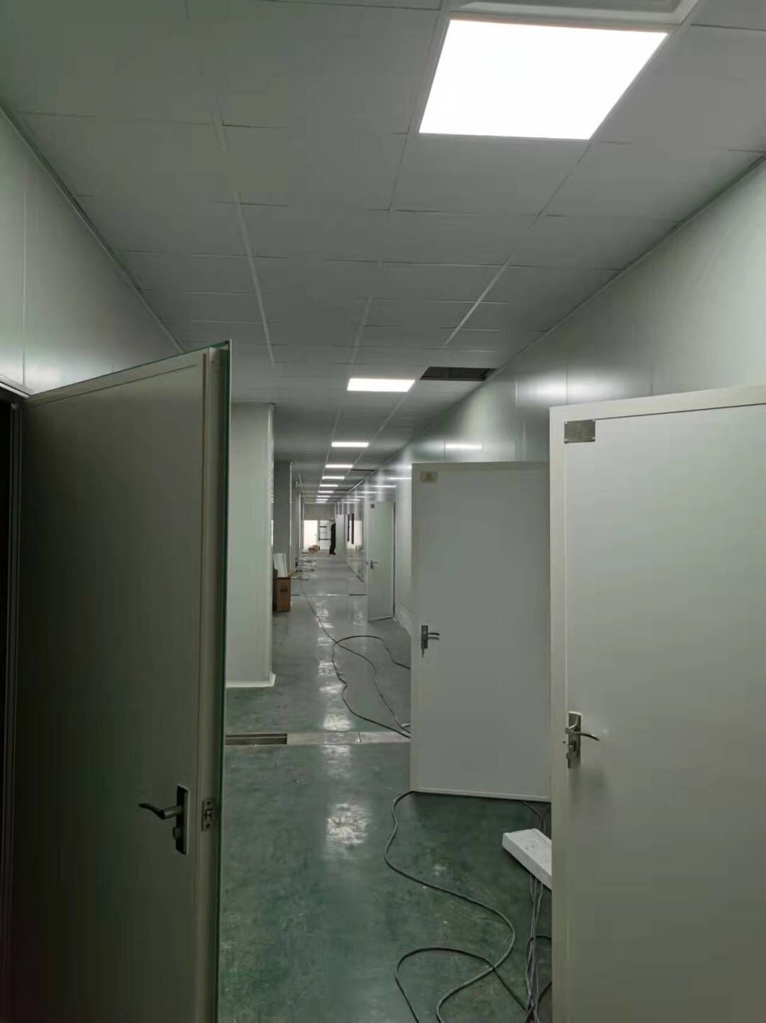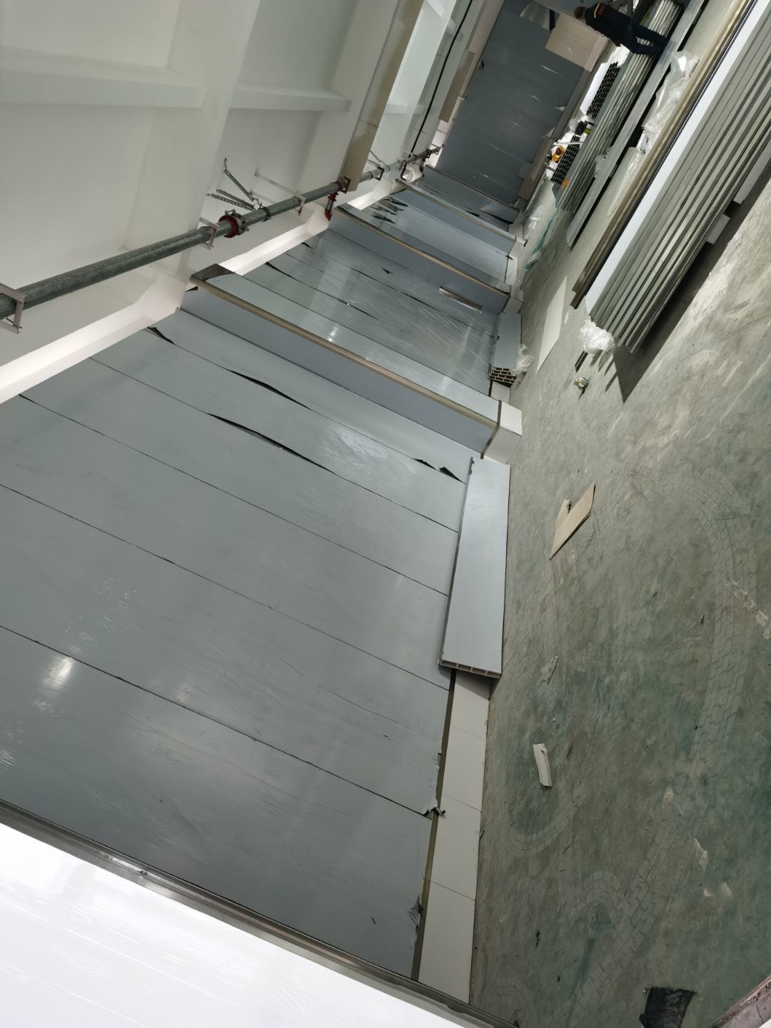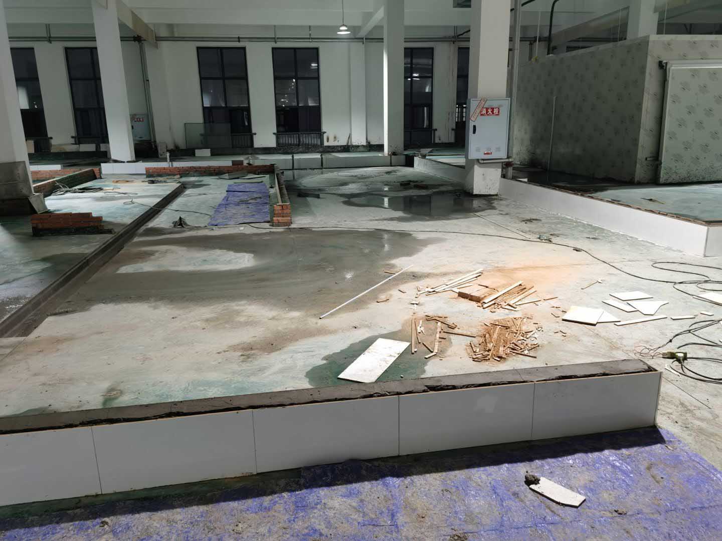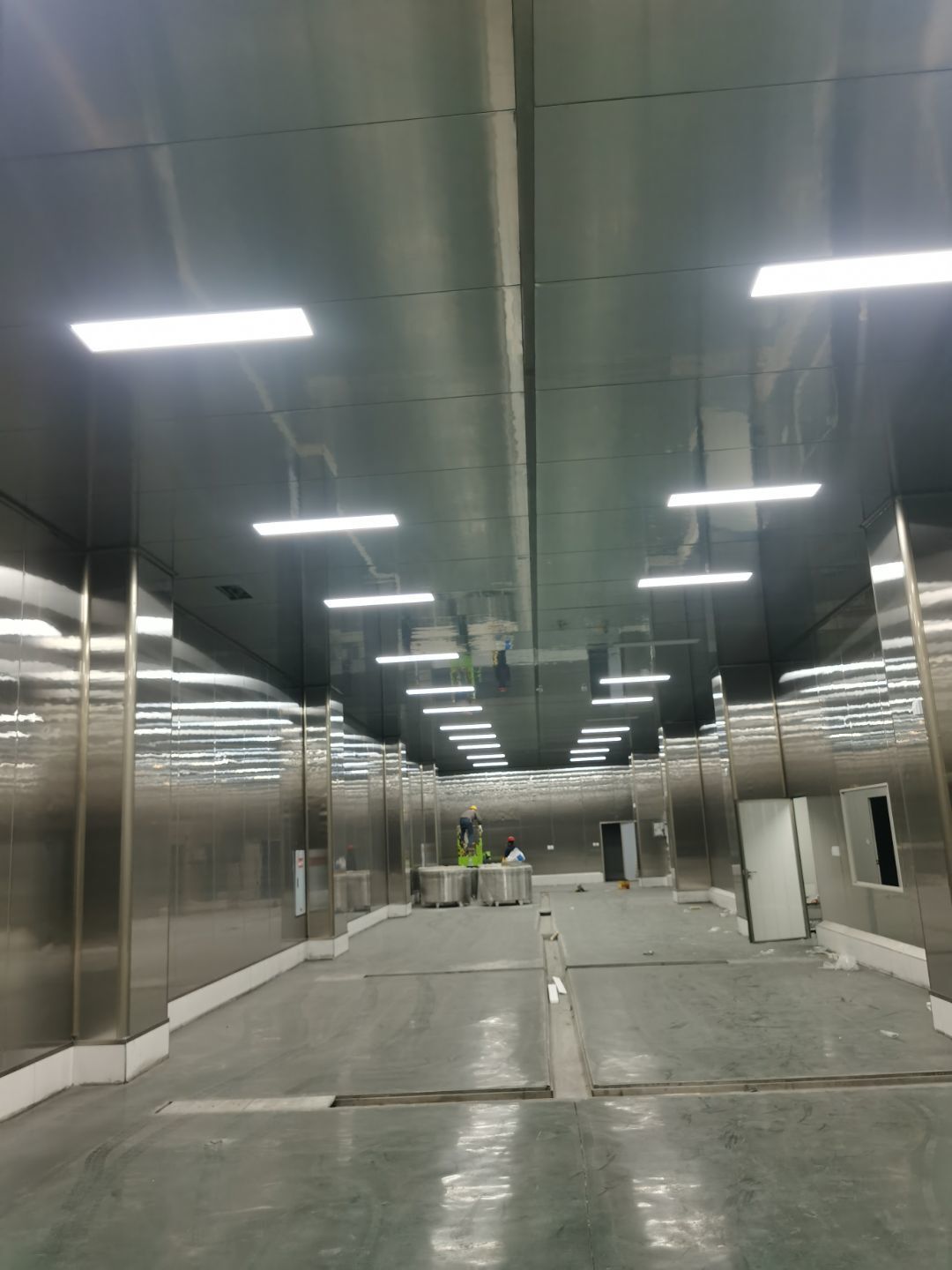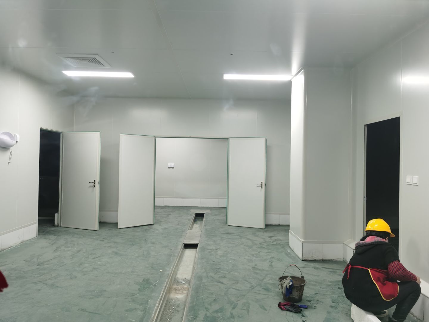 今日施工內容。 ①擋水墻貼瓷磚完成 進度100% ②彩鋼墻板施工第12天,完成進度100% ③彩鋼板頂板完成進度100% ④彩鋼板收尾工作完成進度95% ⑤彩鋼板門,窗,制作及安裝完成80% ⑥固化地面施工第7天,完成進度95% ⑦,水電進場施工第5天,完成進度75%