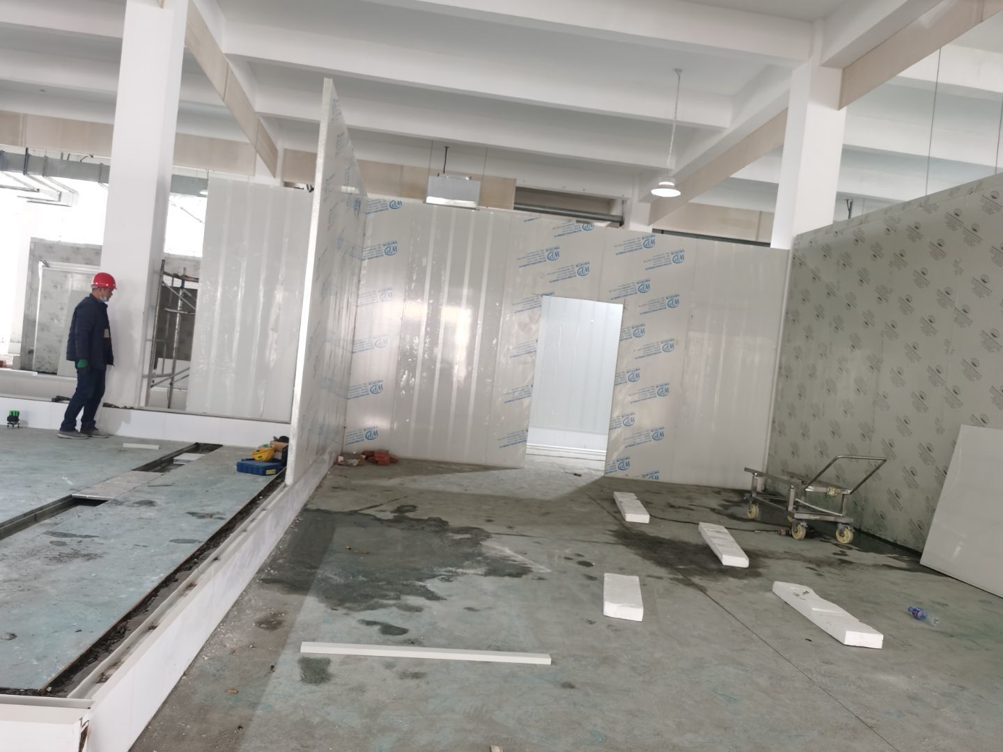 ①擋水墻主體施工第7天,完成擋水墻進度65%,擋水墻暫停進度,等待下一步工藝進行 ②防水進場施工第15天,防水進度完成100% ③排水管師傅進場施工第10天,室內排水管及排水點位完成100%室外排水管完成進度100% ④室內排水暗管找坡完成進度100% ⑤凍庫防水完成100% ⑥發泡混凝土進場施工第5天,進度完成100% ⑦等待黃色預警解出通知,準備下一歨工藝流程