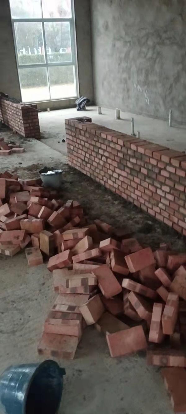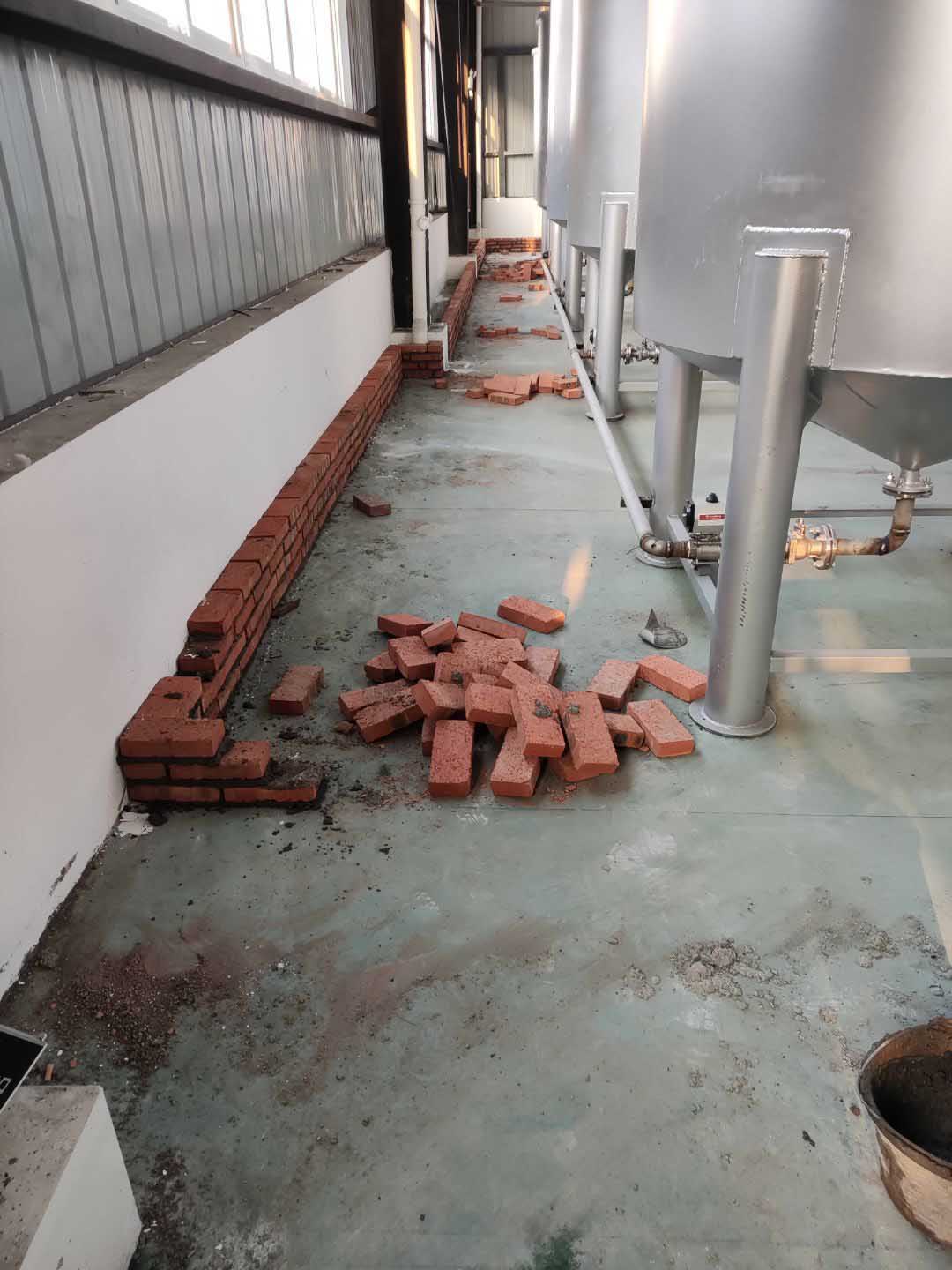 廁所砌磚完成,包裝線工具清洗間擋水墻砌磚完成,煉油線清洗間擋水墻砌磚完成50%。
