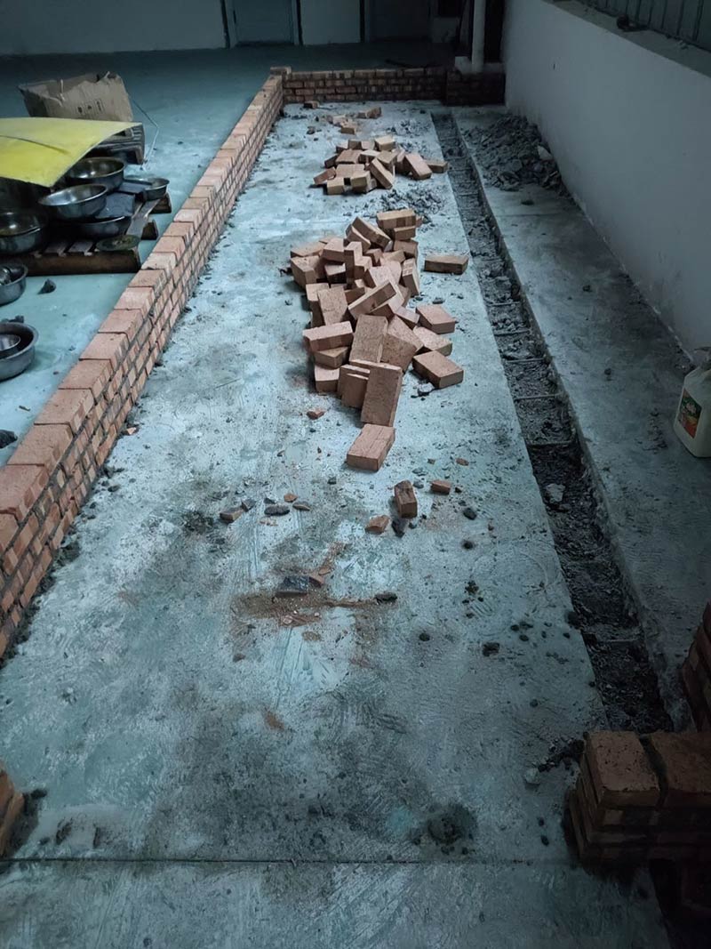 鋼管架頂端拆除完成,隔斷施工