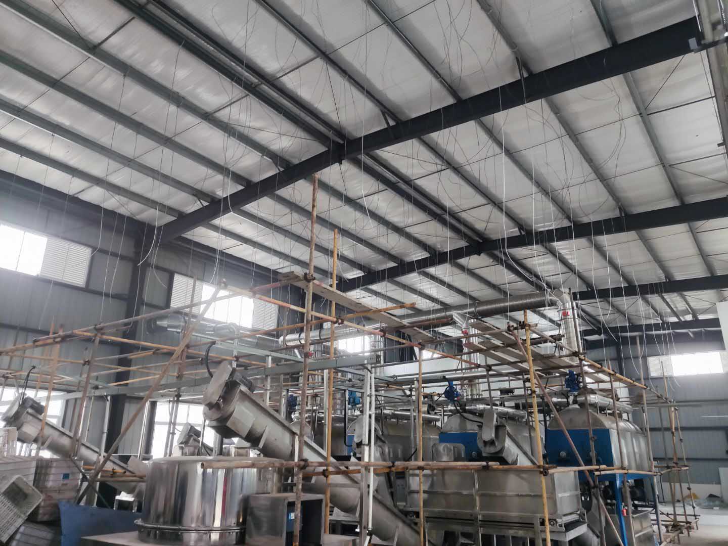 二樓車間凈化板吊頂完成,圓弧安裝完成約10%;一樓車間內三防板吊頂完成,一樓車間圓弧安裝完成約80%;單層廠房擋水墻砌磚完成約80%。
