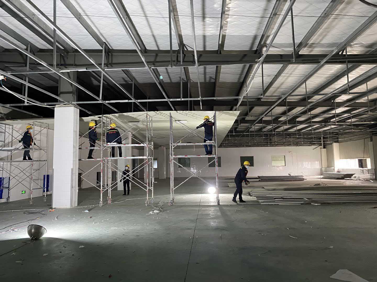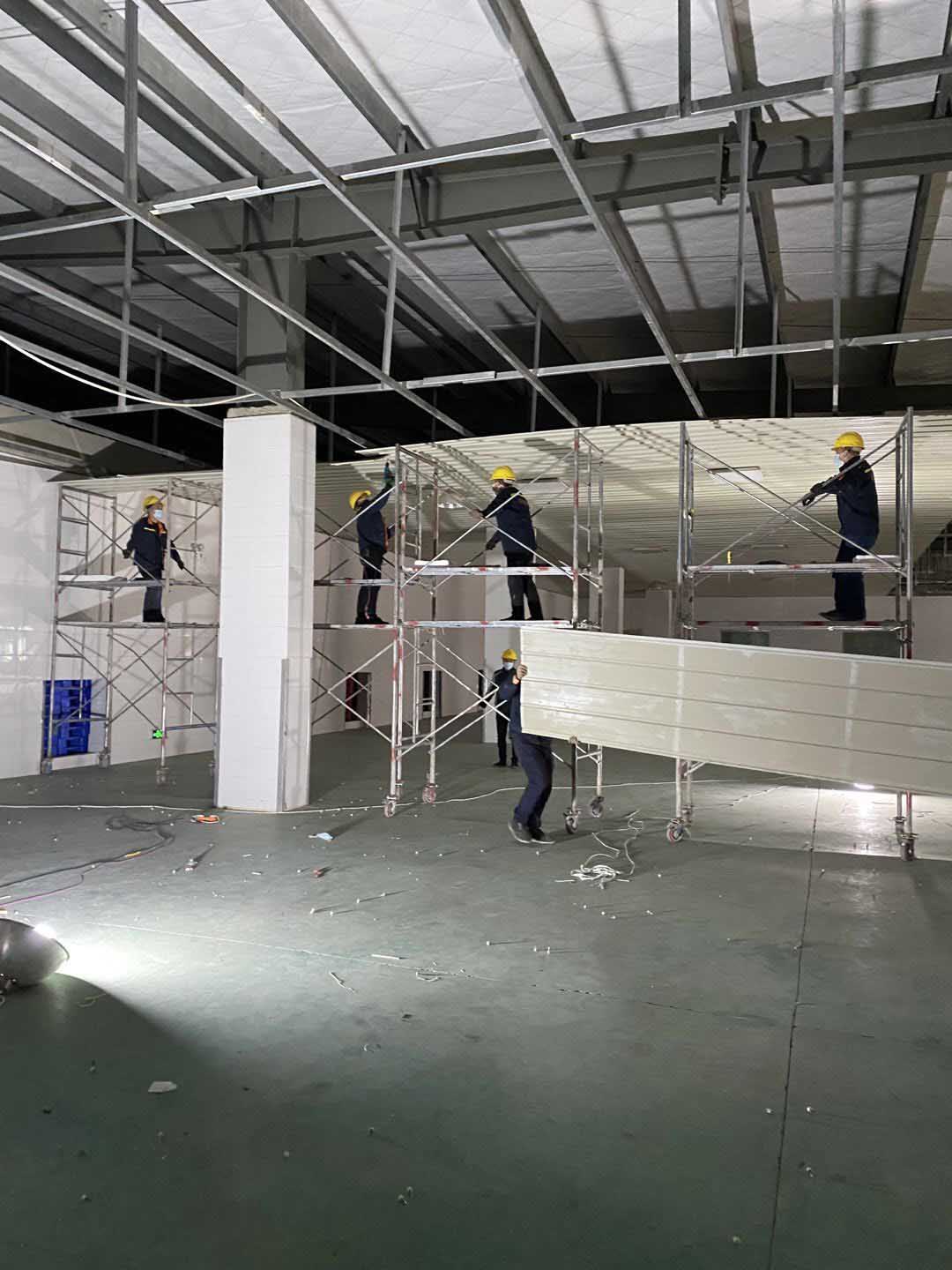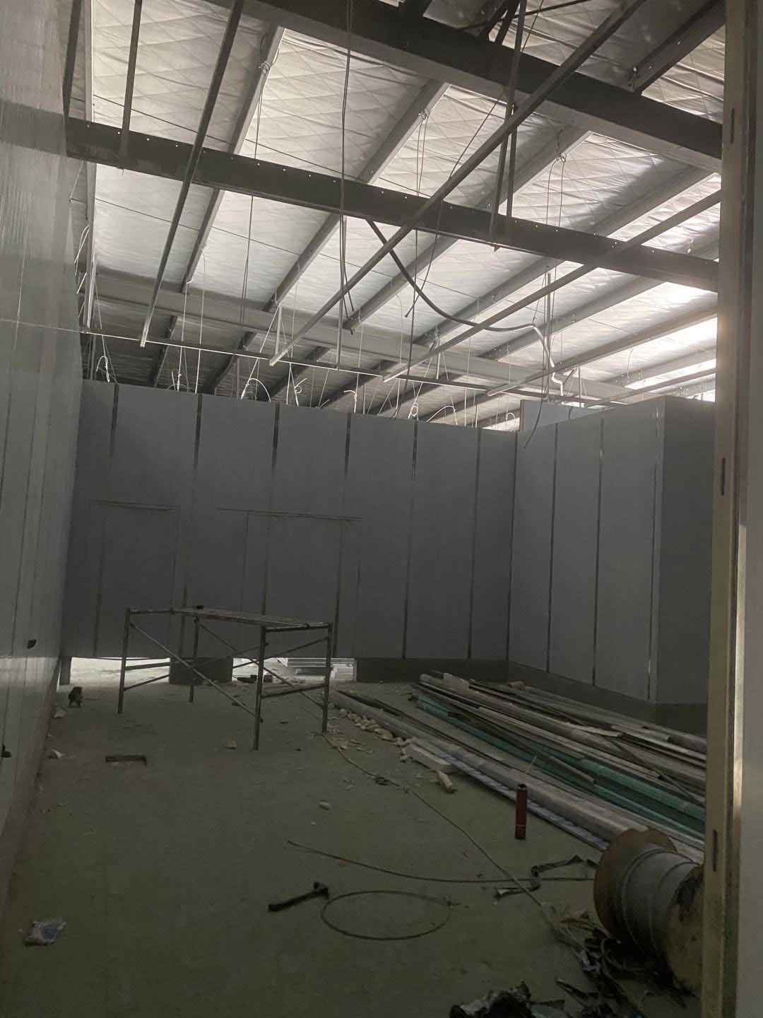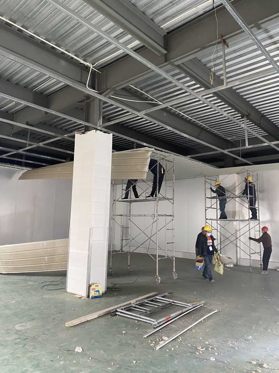 1、三車間環氧地坪超耐磨面層施工完成、二車間增加環氧地坪工程量打磨和底涂施工; 2、增項彩鋼隔墻板施工、門安裝; 3、風機電源接駁、排氣扇波紋管更換安裝; 4、土建擋水墻、門洞貼磚勾縫
