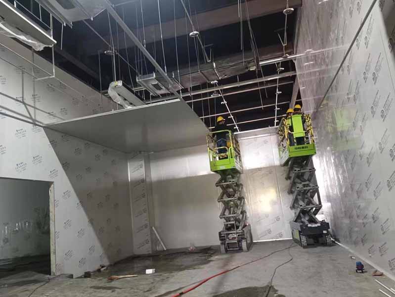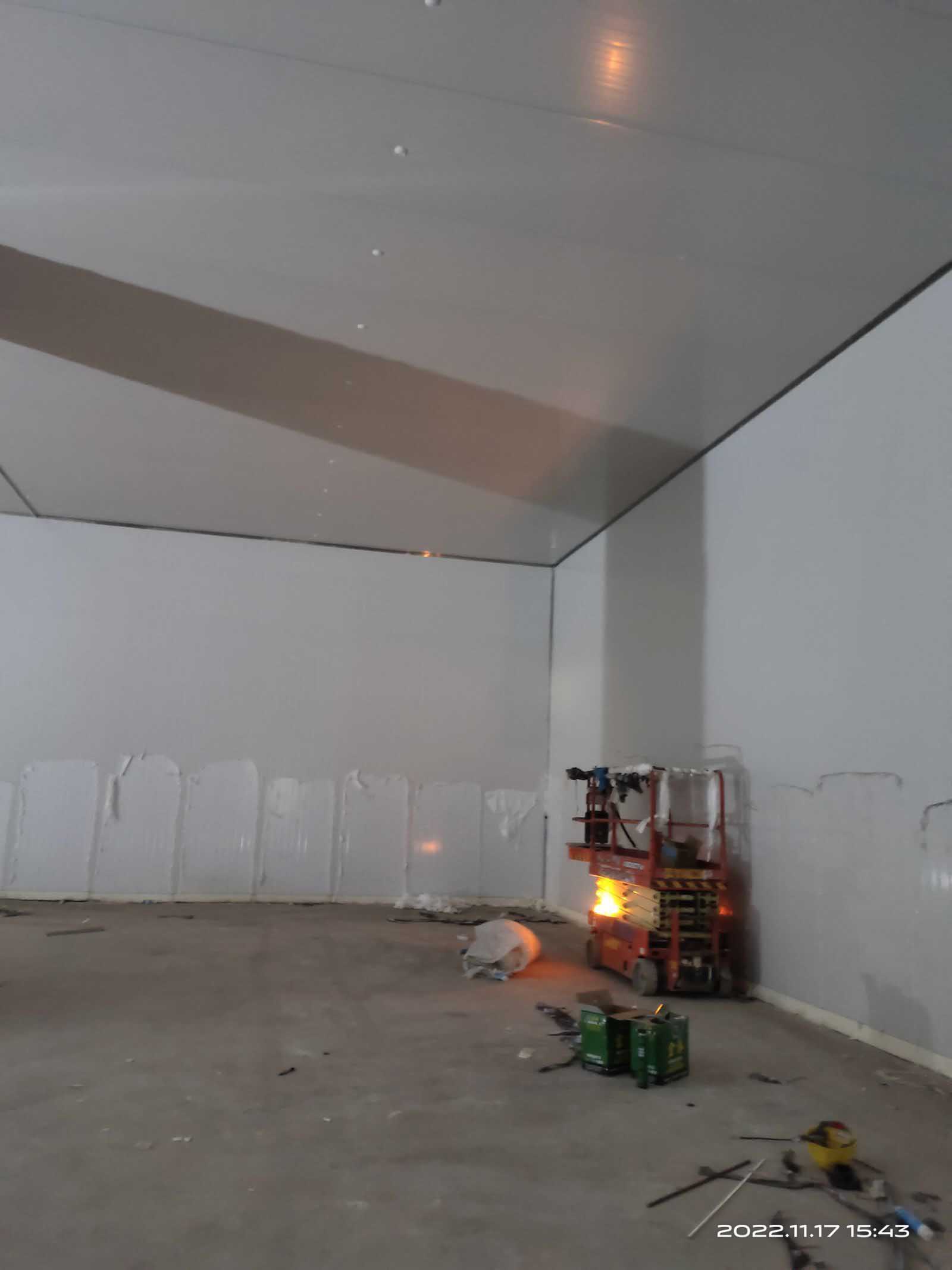 1.凍庫墻板安裝 2.凍庫板頂板安裝。 3.鋼構(gòu)夾層下料,施工