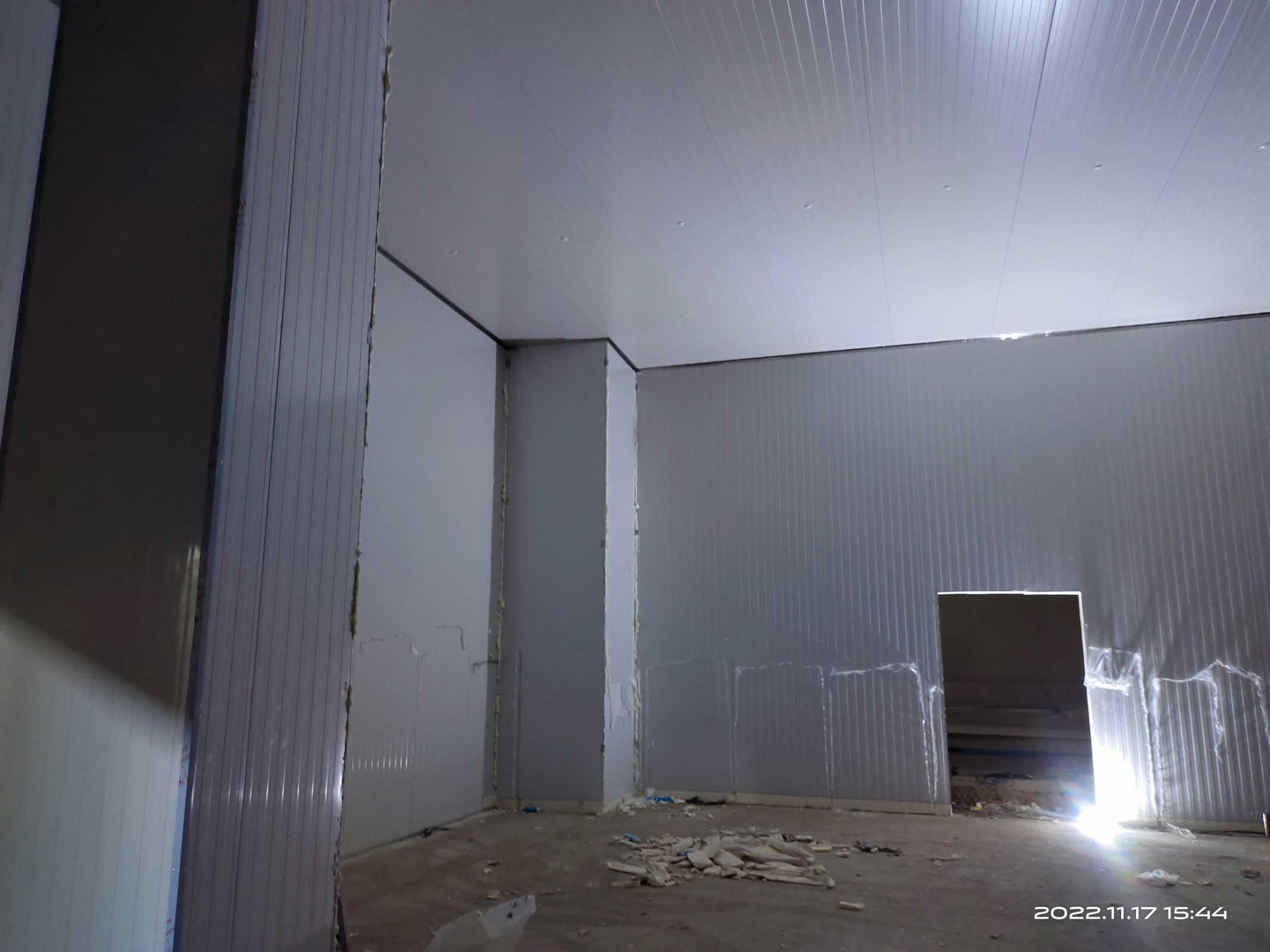 1、凍庫控制電柜線路配線安裝98%,線路檢測。 2、凍庫設(shè)備管道清灰、自檢。 3、裝修收尾完成。 4、自由門邊擋水墻收尾完成 5、衛(wèi)生打掃