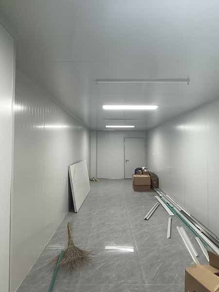 1,鋼材除銹刷漆。 2.原料庫板安裝,速凍庫板安裝,緩存間庫板安裝, 3.成品庫庫板安裝, 4.衛(wèi)生打掃, 三.材料進(jìn)場, 凍庫板到貨及輔材到貨,凍庫板安裝