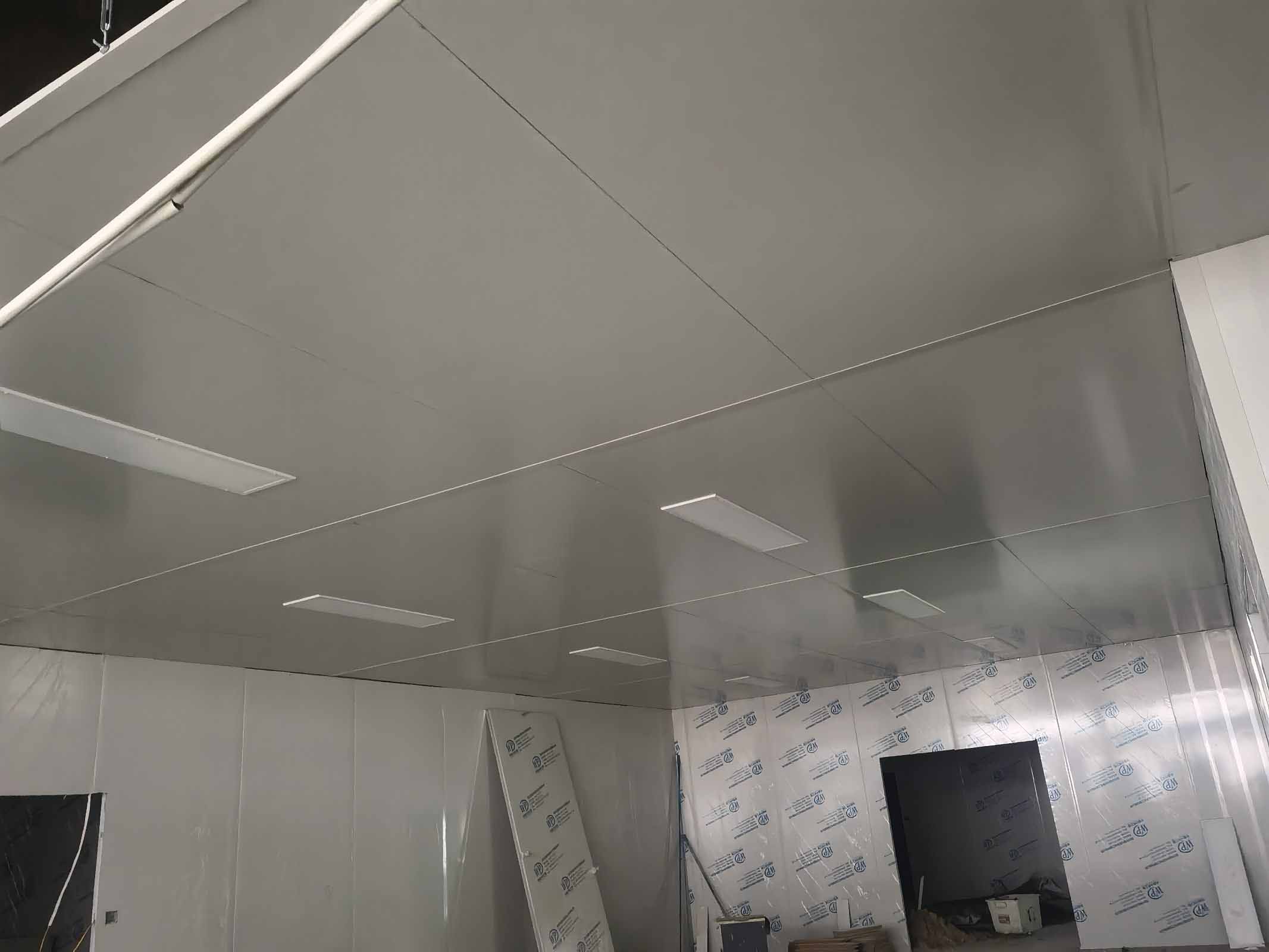 1,彩鋼墻板施工第20天,除預留區域外完成進度100% 2,彩鋼頂板施工第9天,完成進度55% 3,水電照明安裝施工第8天,完成進度40% 4,擋水墻貼瓷磚施工第19天,完成進度85% 5,現場衛生清理及清運
