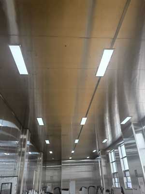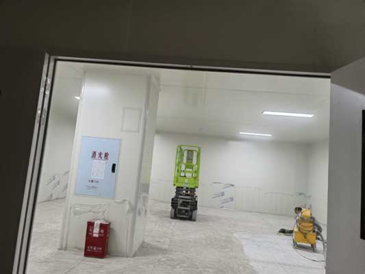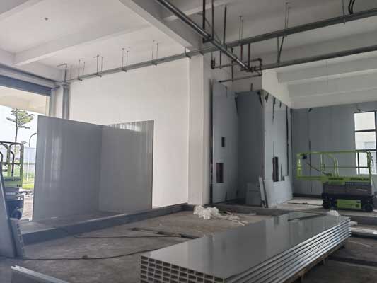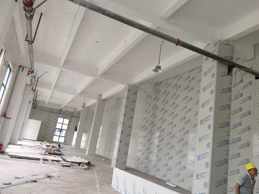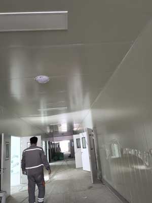 ①新風風管安裝第50天,完成進度85% ②彩鋼板增項,施工第2天,完成進度80% ③水電工進場施工第51天,成完進度85% ④乳膠漆前期處理施工第3天,完成進度100%