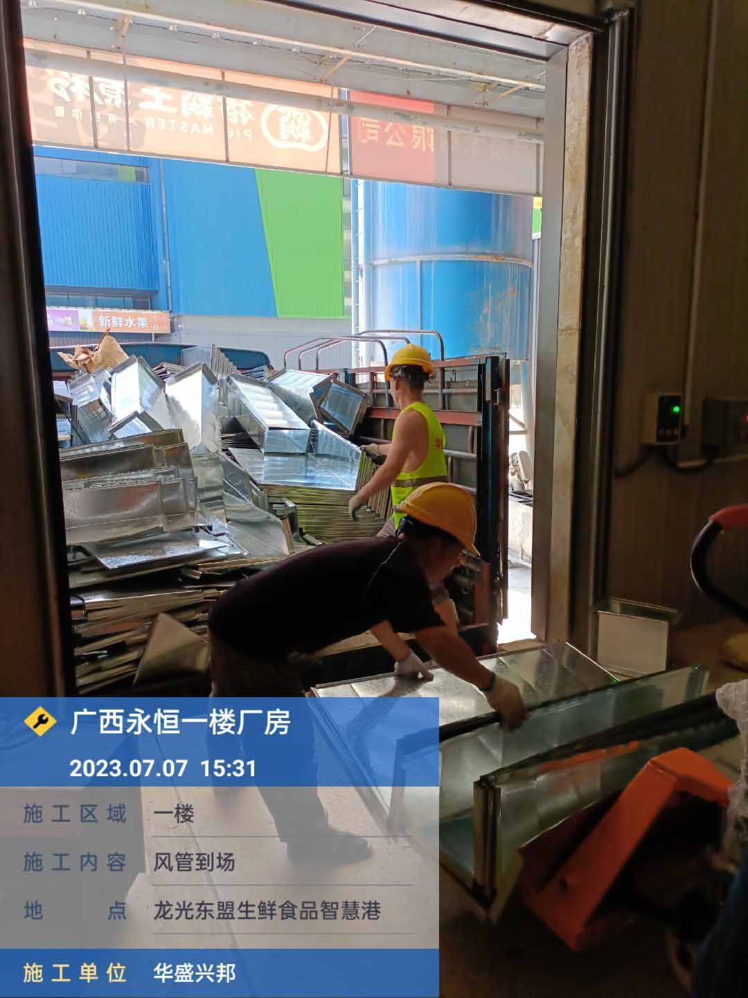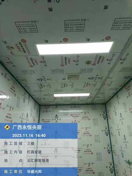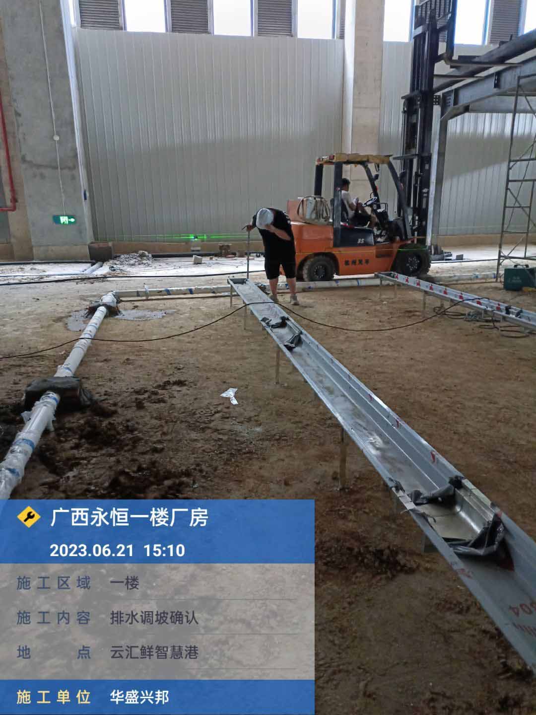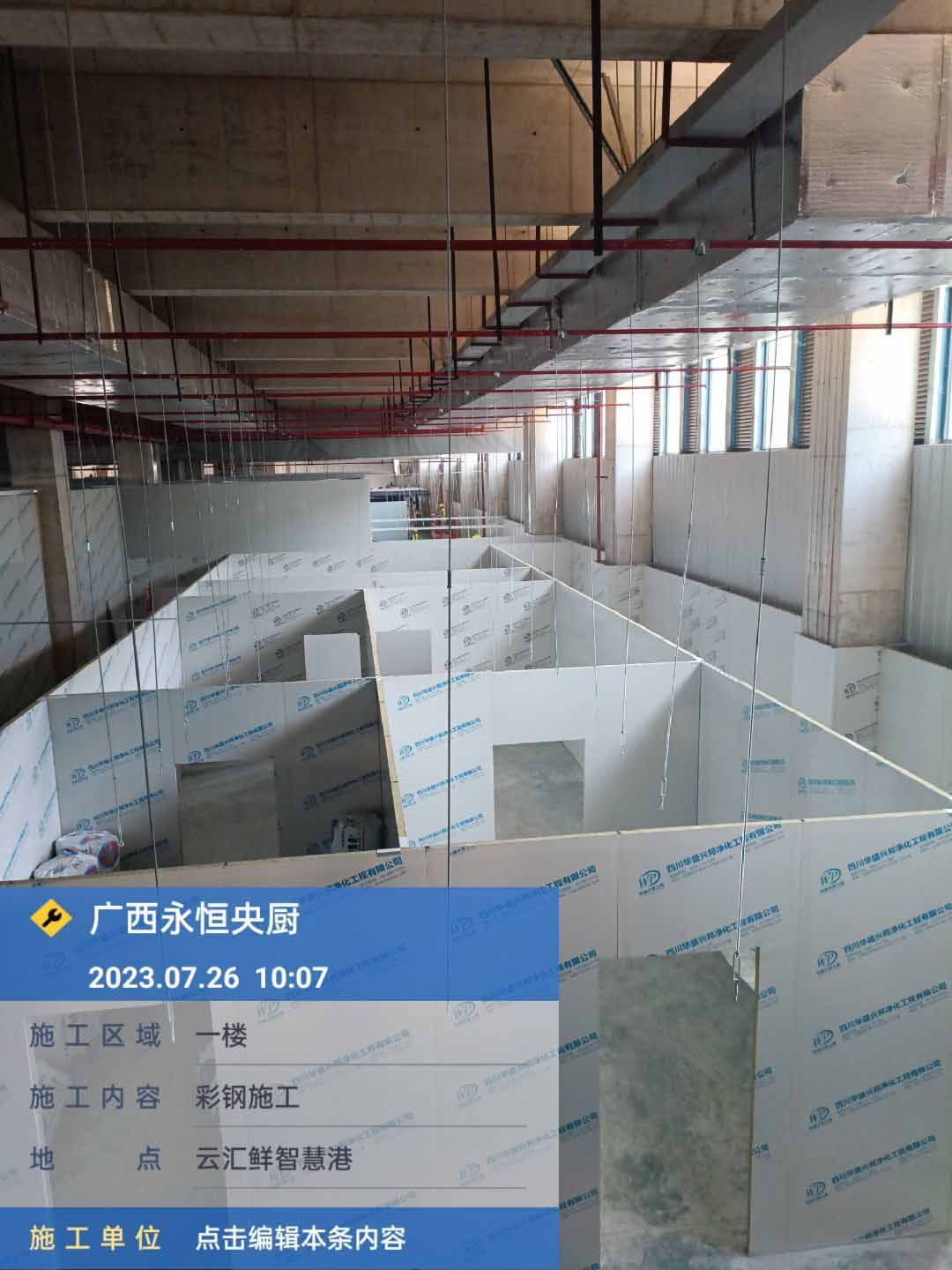 日施工內容 一樓: 1:公區固化施工 三樓: 1: 暖通水管安裝 2: 風管保溫 安裝 3:彩鋼立板 吊頂安裝 4:照明燈具安裝 5:彩鋼密封工程施
