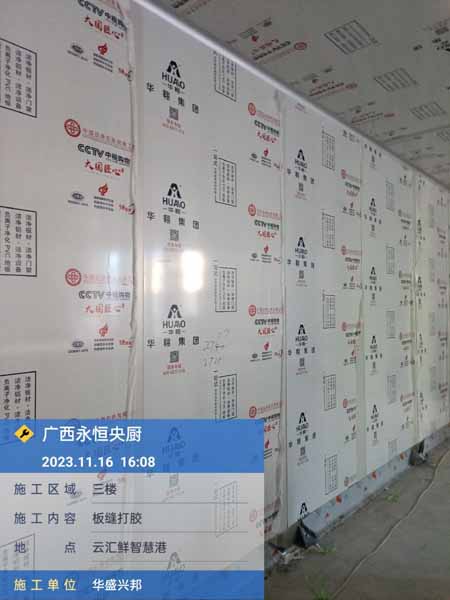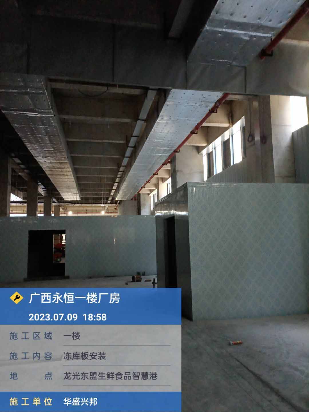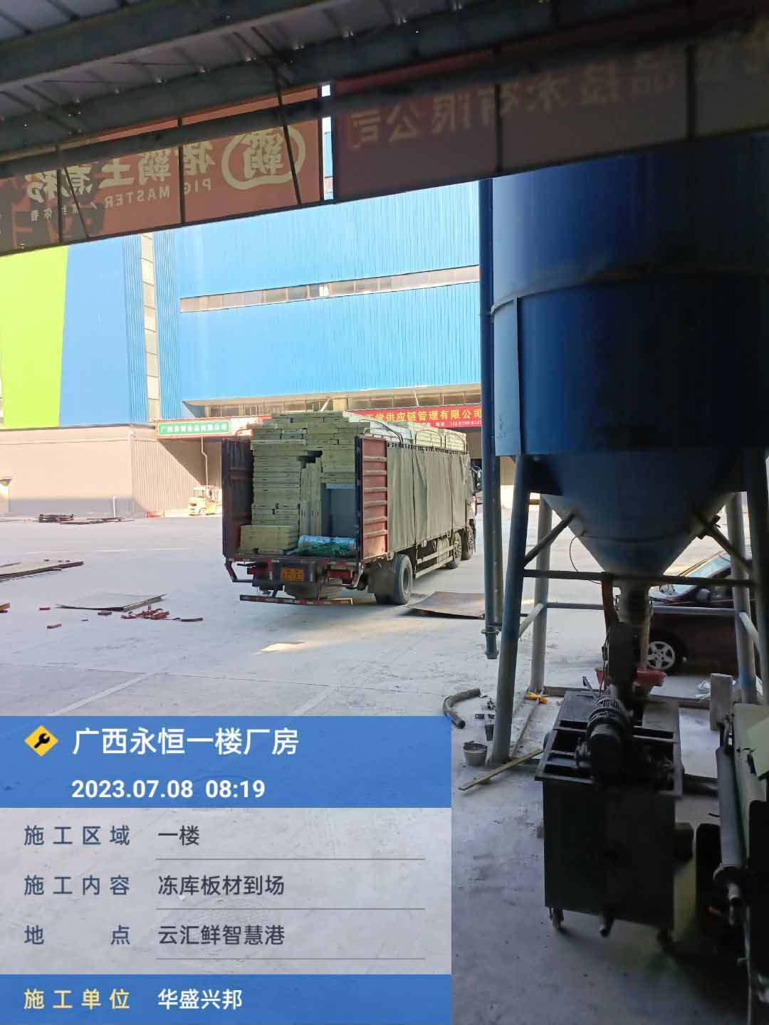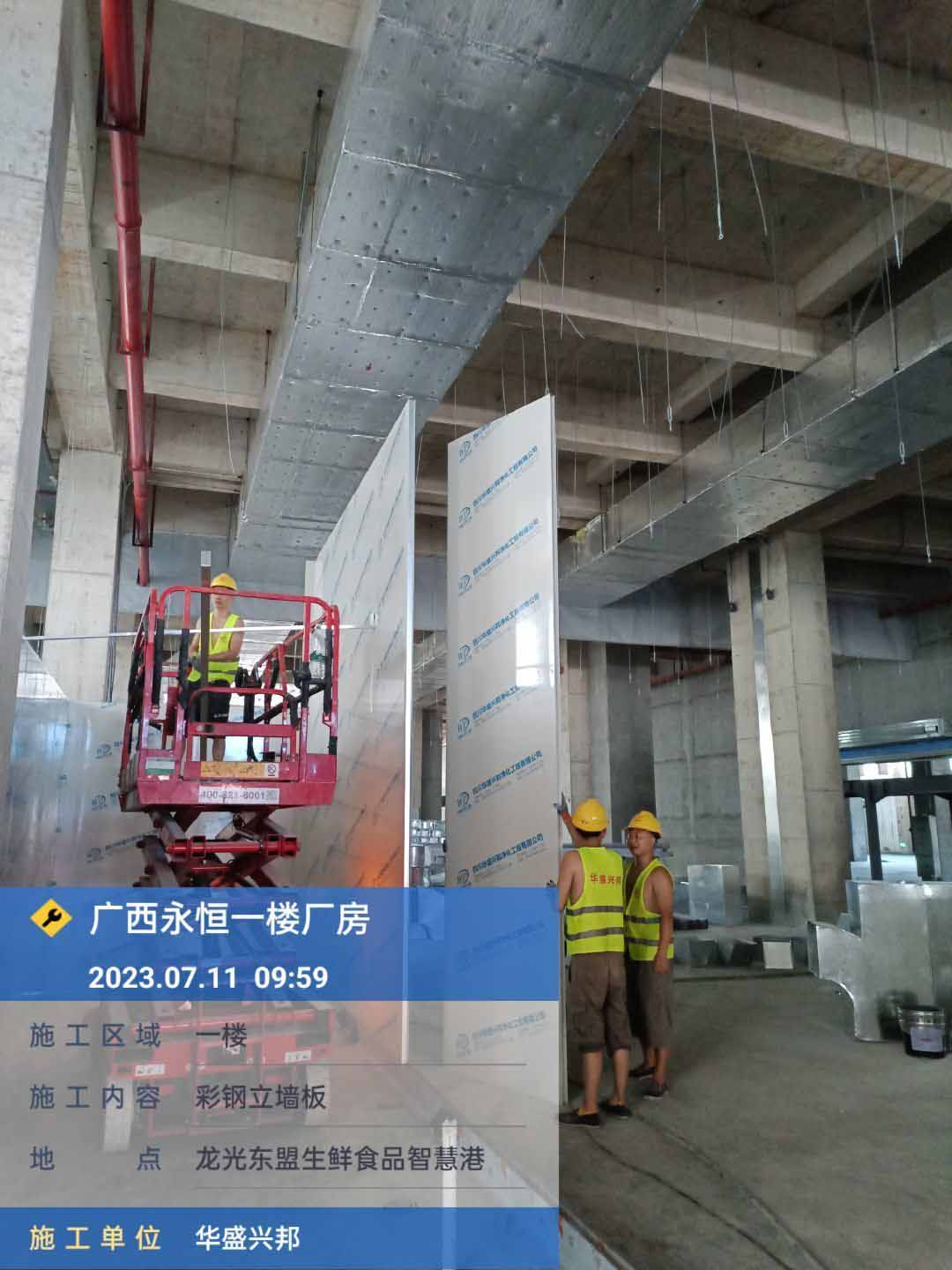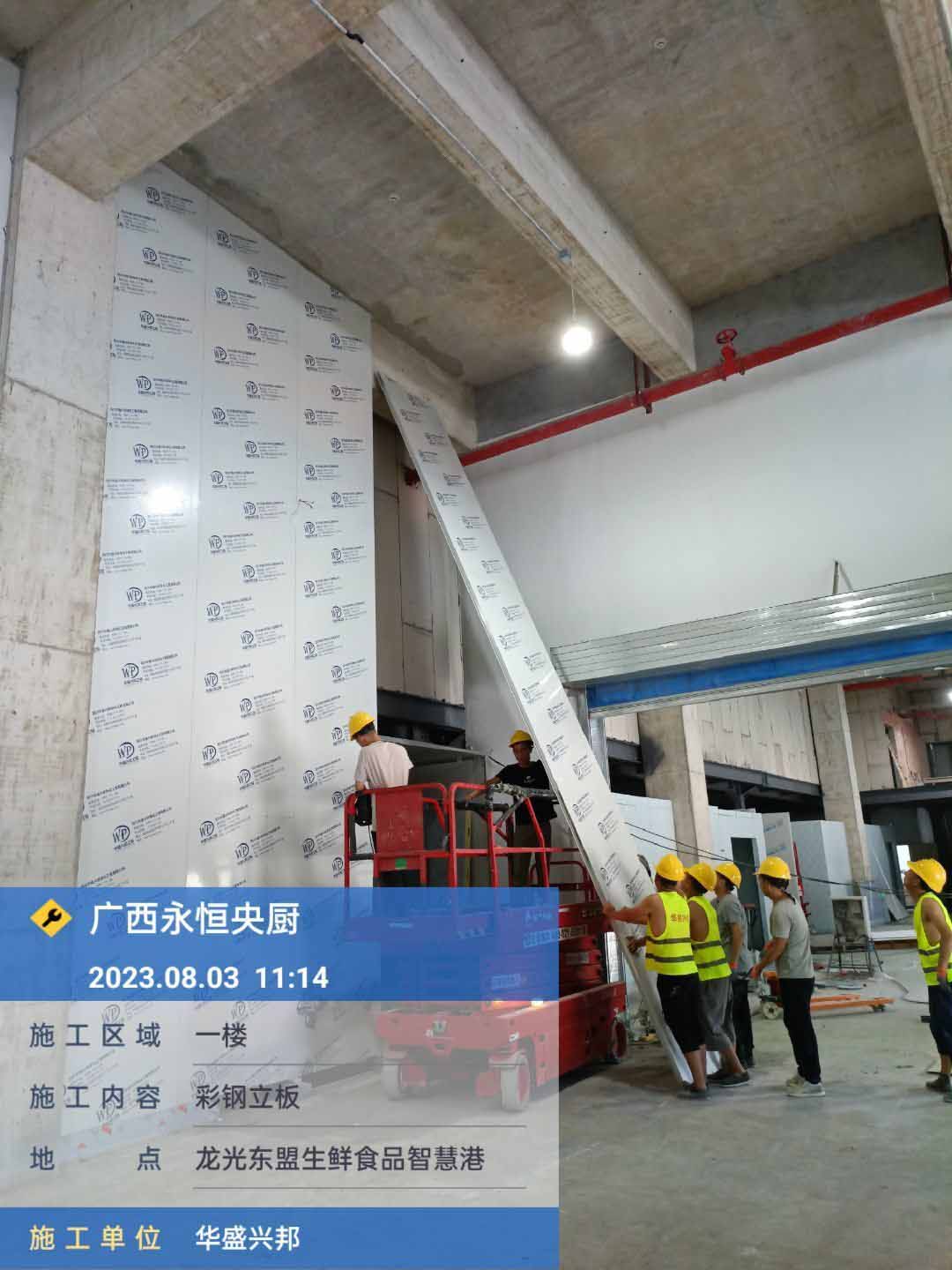 日施工內容 一樓: 1:公區固化施工 三樓: 1: 暖通水管安裝 2: 風管保溫 安裝 3:彩鋼立板 吊頂安裝 4:照明燈具安裝 5:彩鋼密封工程施