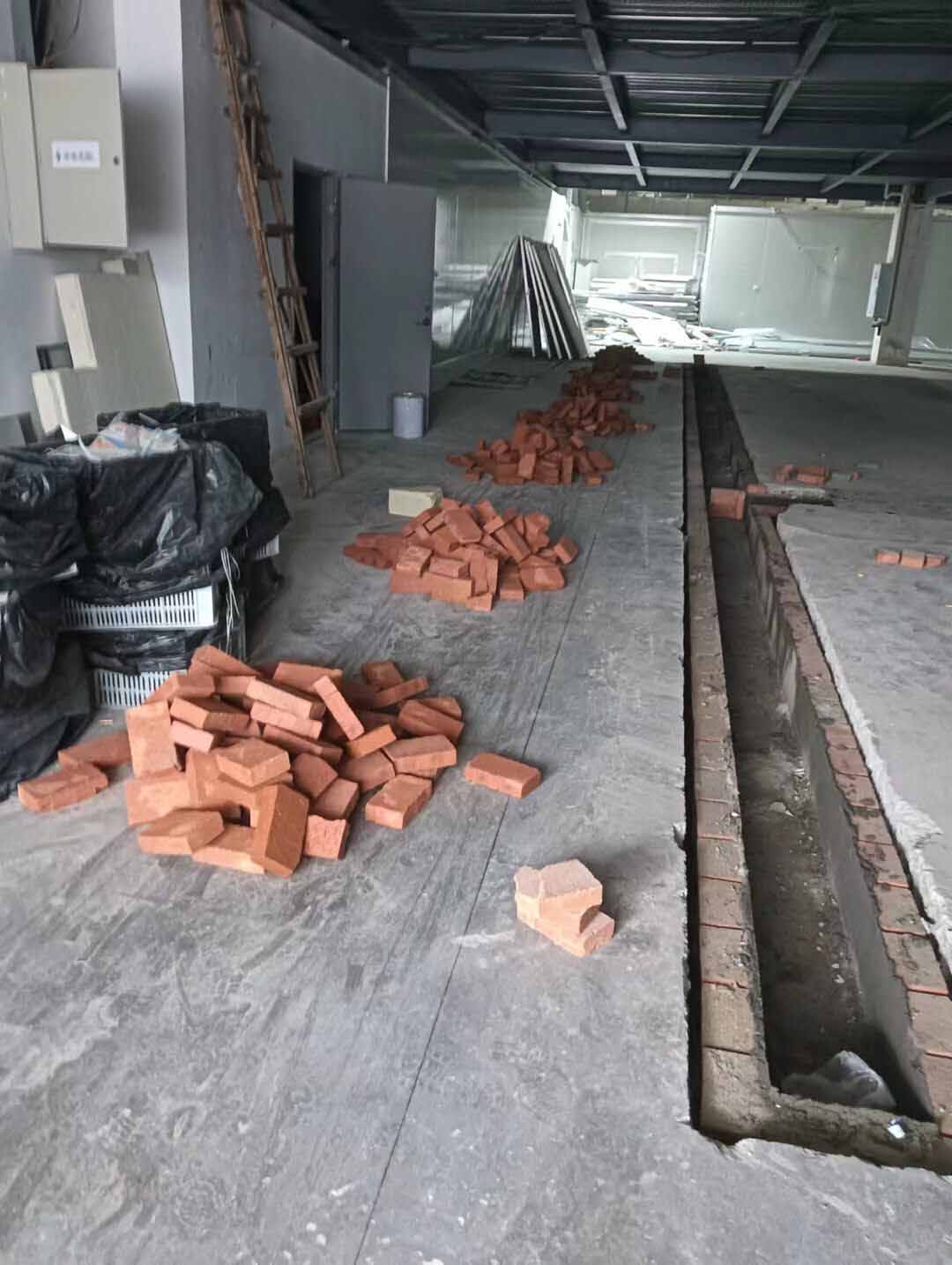 水溝清理完成,第一批板材到場