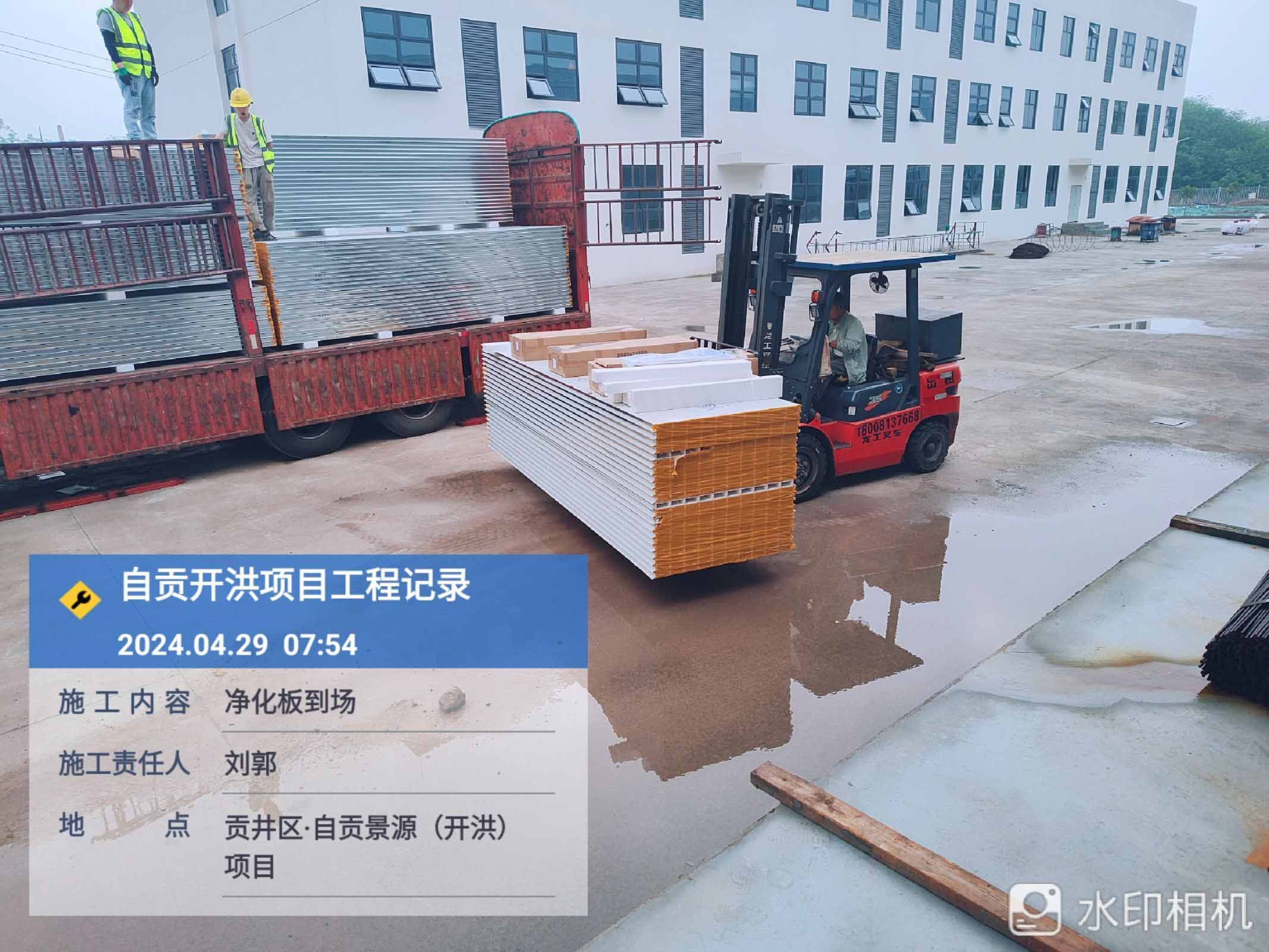 板材到場,施工