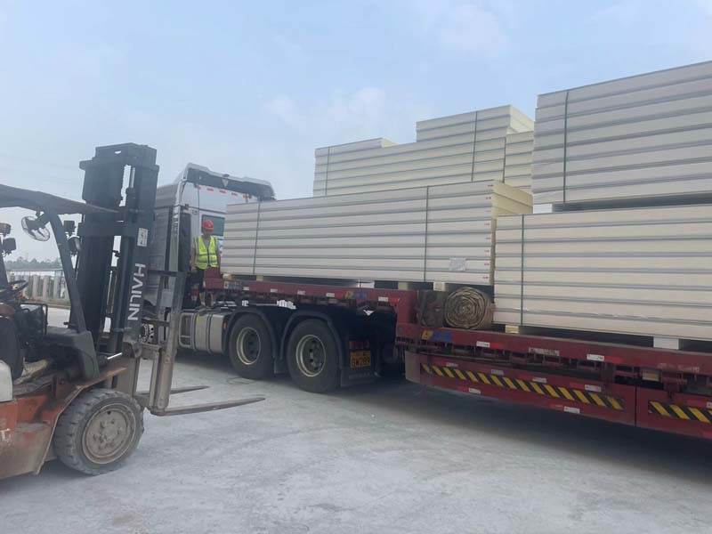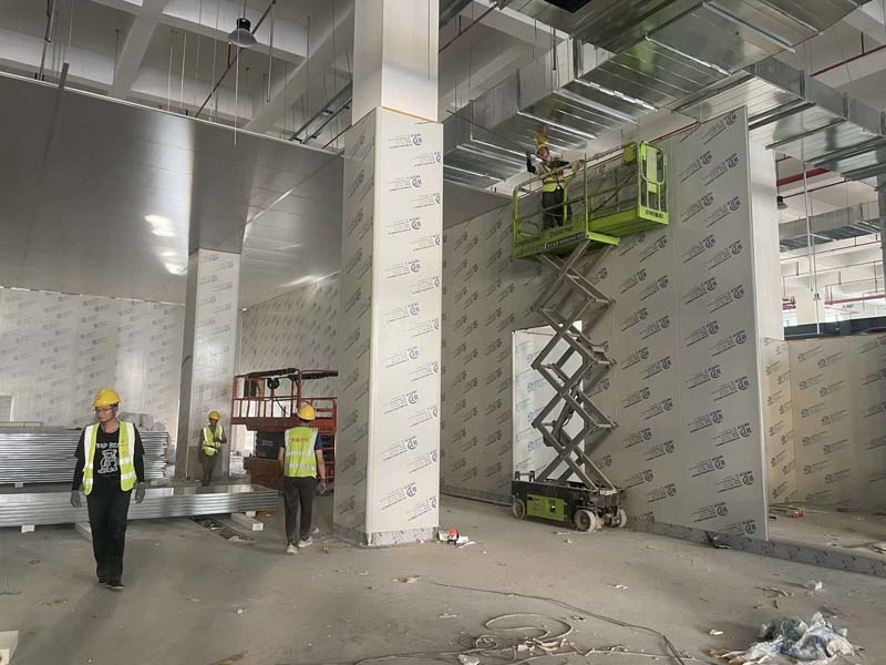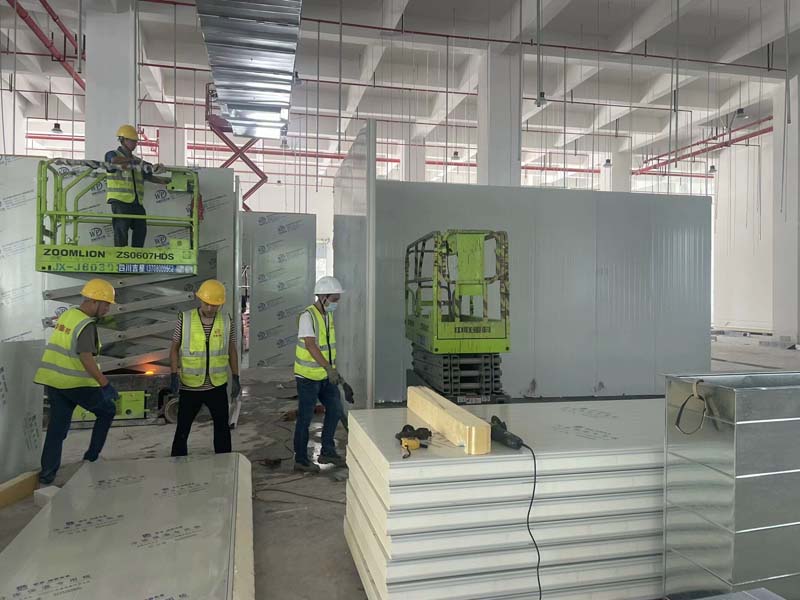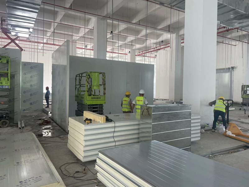 隔斷施工,凍庫(kù)保溫板材到場(chǎng)